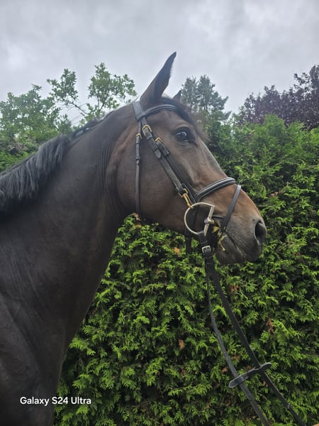 Elmo is a very rideable and talented gelding who learns quickly. Due to time constraints from training other horses, he is still quite green, making him an excellent candidate for self-education. He can perform flying changes, is very easy to handle in daily work, and is comfortable in the field. He also loads onto trucks and transports without issues. Currently, he is barefoot. A health certificate is available until 2024. Elmo has competed successfully in show jumping and has been placed (i.e., he has won) in introductory jumping classes. He has natural talent for free jumping and can be easily integrated into beginner to medium-level show jumping with potential for more after winter training.