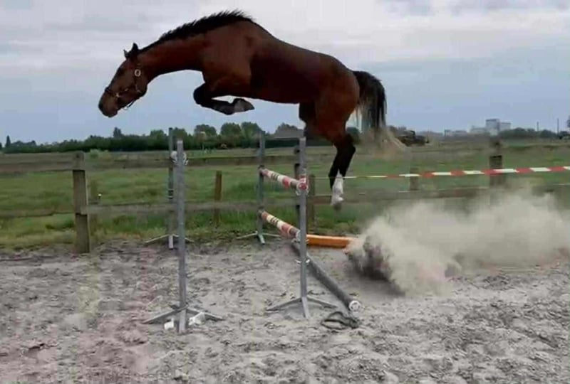Pięcioletni, 175 cm wysokiego wałacha. Koń już brał udział w mniejszych zawodach, również z młodym jeźdźcem. W domu pewnie pokonuje parkur o wysokości 125 cm, a do tej pory próbowaliśmy pojedynczych przeszkód do 140 cm. Ma czyste zdjęcia RTG. Cena 15 000 €. Więcej informacji na WhatsApp: +36706774446 Lokalizacja: Węgry, Pest