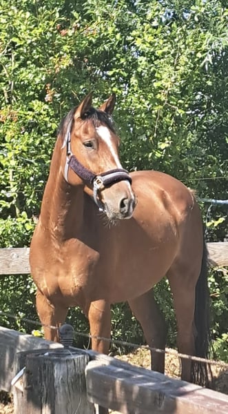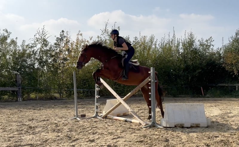 Hübsches, gesundes Pferd mit Kraft und Arbeitswillen. Springt problemlos bis 1 m frei, arbeitet unter dem Sattel an 60-80 cm mit Fokus auf Springqualität. Er befindet sich in einer schönen Lernphase, sollte dieses Entwicklungstempo jedoch besser gemeinsam mit seinem neuen Reiter fortsetzen. Kein Anfängerpferd: sucht erfahrenen Reiter mit Ruhe und Führungsqualitäten. Transportbereit, sozial. Mit gemischten Gefühlen zu verkaufen aufgrund von Leistungsniveau über meinem Können.