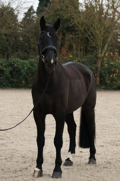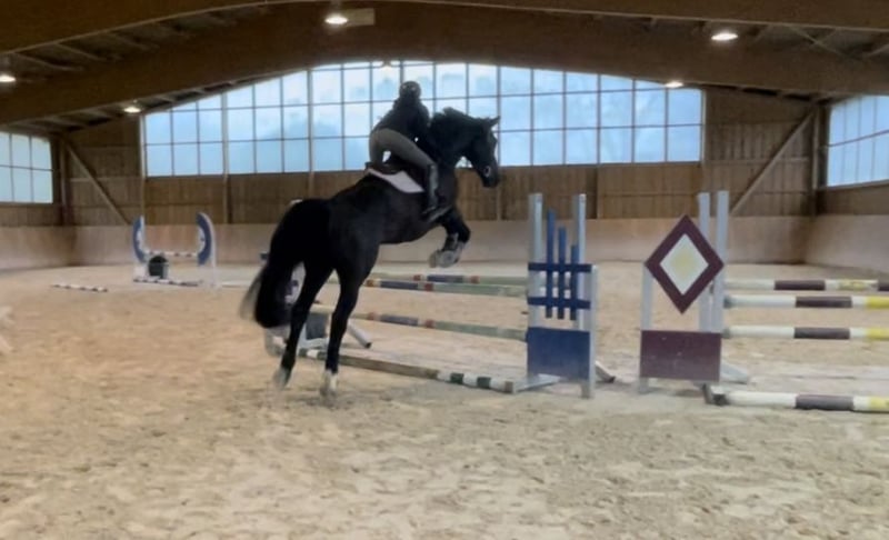 Talented and stunning 8-year-old, approximately 17.7 hh black-brown gelding with excellent show jumping pedigree. No vices such as bucking or rearing. Rides confidently alone or in a group in the terrain and is familiar with cattle, sheep, and goats. Regularly vaccinated, dewormed, and regularly seen by the veterinarian for dental care. TÜV from 2022 available. More information gladly provided personally! Please note: My horse is not suitable for vaulting!