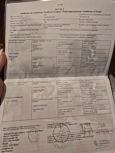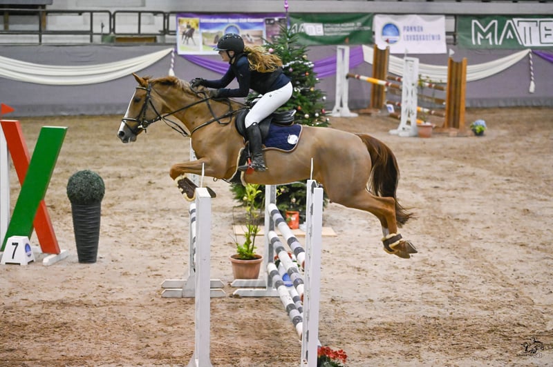 Elegancka klacz sportowa z Belgii na sprzedaż Poznaj wyjątkowe cechy tej pięknej belgijskiej klaczy sportowej, urodzonej w 2016 roku. Ma 168 cm wzrostu, zachwyca pięknym kasztanowym umaszczeniem oraz wysmukłą, atletyczną sylwetką. Jej imponujące pochodzenie gwarantuje połączenie talentu, temperamentu i wszechstronności. Sprzedawana na cele hodowlane i rekreacyjne. Przeprowadzono czystą kontrolę weterynaryjną, regularnie pielęgnowana, jednak nie jest już odpowiednia do uprawiania sportu.