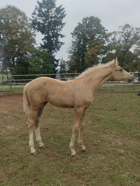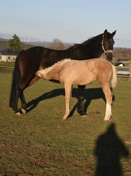 Hier gibt es nicht nur eine wunderschöne Palominofarbe, sondern auch beste Genetik. Elsa präsentiert sich als sehr korrektes und mutiges Fohlen mit viel Kraft in der Hinterhand und einem harmonischen Exterieur. Sie hat viel Energie, ist aber sehr umgänglich. Lässt sich brav halftern und führen, gibt Hufe und lässt sich überall anfassen, einsprühen, etc. Ideales Sportpferd für einen ambitionierten und versierten Reiter/Reiterin in der Vielseitigkeit oder im Springsport. Endmaß sollte bei ca. 1,66m liegen. In Premium-Aufzucht mit hochwertigem Futter, regelmäßigem Schmied und täglichem Weidegang seit Geburt. Kann dort auch verbleiben, falls ein Aufzuchtplatz benötigt wird. Nur aufgrund persönlicher Umstände abzugeben. Platz vor Preis, sportliche Förderung steht im Vordergrund. Bei entsprechenden Referenzen bin ich bereit entgegenzukommen. ------------------------------------------------------------------------------------------------------------------ Bereit für einen Exkurs in ein Leistungspedigree? Der Vater Vanilla Ice de Tamise, ein goldgelber Palomino, ist ein Junghengst und Neuzugang im berühmten belgische Gestüt Stal de Muze. Er wurde letzten Winter schonend angeritten, hat die Belgian Stallion Competition (Springen) absolviert und wird nun für eine Karriere als Vielseitigkeitspferd vorbereitet. Vanilla Ice ist charakterlich einwandfrei und extrem rittig. In seinem Pedigree finden sich nicht nur Stars aus dem S-Springparcours wie Kasanova de la Pomme, Bamako de Muze und Darco, sowie der selbst bis 1,40m erfolgreiche Falbe Cream on Top, sondern auch mütterlicherseits echte Highlights. Mutter Lagune van't Verahof lieferte neben Popeye de Tamise (1,50m) auch bereits Olympic de Muze (4* Karin Donckers) und Ragdoll de Tamise (3* Wouter de Cleene). Großmutter Southern Queen xx ist vor allem bekannt für Ihre Nachkommen Fletcha Van't Verahof (4* Legende von Karin Donckers), Heras van't Verahof (1,60m) und Leipheimer van't Verahof (4*, gekört und Olympiapferd von Karin Donckers). Genetisch und auch im echten Leben ein Hengst der begeistert. Die Mutter von Elsa ist im Hannoveraner Hauptstutbuch eingetragen inkl. Freispringen. Sie verfügt über raumgreifende Grundgangarten, fantastische Rittigkeit und eine sehr saubere Springtechnik (Technik 8,0). Durch einen Anhängerunfall mit Teilabriss des Nackenbandes ist sie leider nicht im Sport gelaufen. Muttervater Viscount gilt als sicherer Doppelvererber. Er ist väterlicherseits ein Halbbruder zu Nadine Marzahls viel zu früh verstorbener Valentine. Er selbst hat Nachkommen in allen Disziplinen bis Klasse S. In der VS u.a. Viscount Victor (5* Tim Price), Venezuela (4* Emily Grace), Very Special (4* Brandon Schäfer-Gehrdau), Vidalgo (3* Kevin McNab), Viscina (3* Felix Vogg), Valetta (3* Jörn Warner), und viele mehr. Die Großmutter war nach einem späten Einstieg selbst im Sport unterwegs (mangels passendem Reiter nur bis 1,30m). Sie ist eine der letzten noch lebenden und in Deutschland verbliebenen direkten Mytens xx Stuten und erfreut sich mit 23 bester Gesundheit. Mytens xx gilt als eine Legende der Vollblüter in der Warmblutzucht. Er selbst ist ein Sohn eines Weltrekordpferdes und wurde als Jährling für 995.000 USD nach England verkauft, gewann dort Rennen und wechselte dann in den Springsport, wo er bis in die schwere Klasse erfolgreich war. Mytens lieferte Sportpferde für alle Disziplinen, u.a. die Derby-Sieger Watermill Fourth xx und Watermill Seven xx, viele S-Springpferde wie Hamar (gek. USA), Haydn (gek. SWE), Helibantos, Hytens (gek.), Mullins (Tjark Nagel), Joint Venture (JAP) und viele mehr, sowie in der Vielseitigkeit My Win (gek., 4* Lazlo Egyed HUN), Mighty Magic (gek., 3* Andreas Dibowski), Irco B/Igeret (gek. 3* Bor Schaller HUN) und weitere. Hier findet sich außerdem der Doppelvererber Gambler's Cup xx eingesetzt auf dem ostpreußischen Stutenstamm (O184 A Hoffmann Motitten). Der Stamm ist ein kleines Juwel, neben der Hannoveraner Stute des Jahres 2009 brachte er zudem einige gekörte Hengste, sowie etliche sporterfolgreiche Pferde. Dazu zählen u.a. die S-Springpferde Lantinus Z (Olympiade Springen), Winnie H (Vollschwester zu Wilthy H), Sissi, Ciky Caloa, Salamander, etc. Sowie die S-Dressurpferde Primadonna, Wilwaukee, Al Pacino, etc. Eine Kombination aus dem eisenharten Blut der Ostpreußen, mit der Vielseitigkeit der der alten Hannoveranerlinien und eine guten Portion sportgeprüften Vollblütern.