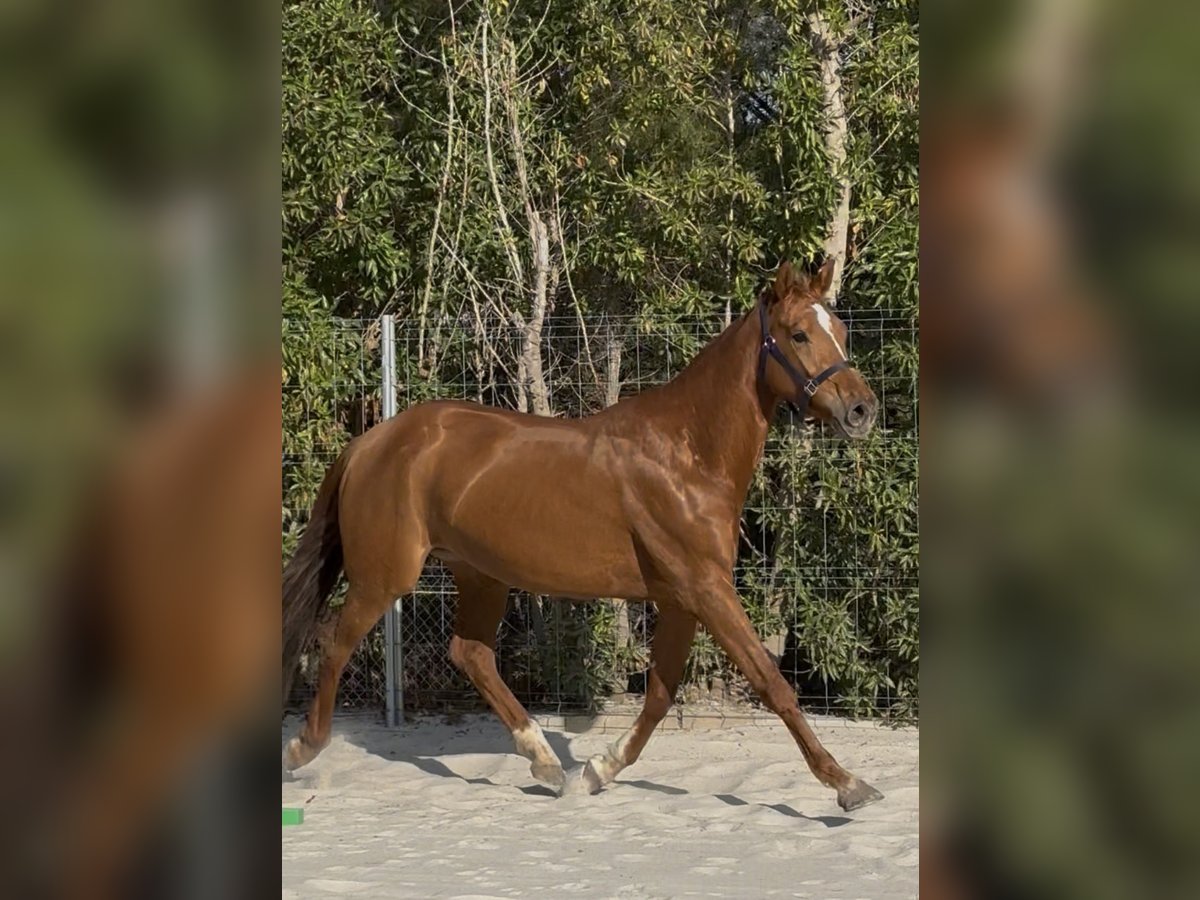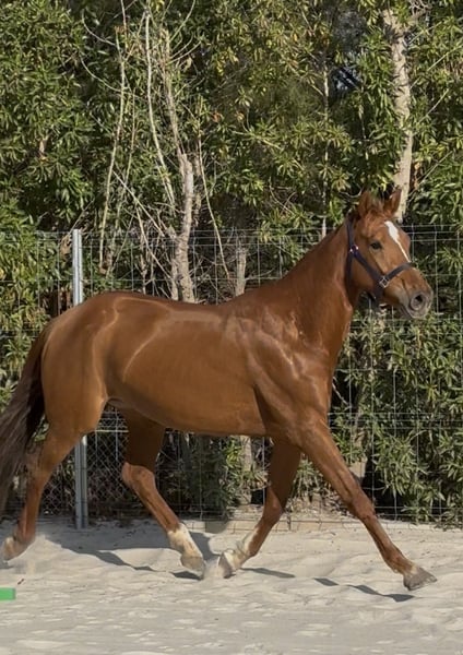 Se ofrece a la venta una hermosa y elegante yegua de 4 años de edad, de color alazán, con un carácter muy dulce, afectuoso y confiado. Recientemente ha sido montada con suavidad y siempre se muestra motivada, dispuesta a aprender y con gran temple. Con una descendencia prometedora en salto y una línea de doma en la parte materna, posee excelentes cualidades para el deporte. Sus tres pasos básicos, firmes y seguros, destacan por su elasticidad y expresividad. Actualmente mide aproximadamente 1,62 m de alzada y aún está en crecimiento. En su trato diario, se muestra sencilla, cercana y curiosa, una auténtica caballo de confianza con encanto y potencial. Ideal para jinetes ambiciosos que busquen un caballo joven con mucho potencial para salto, doma o para un uso versátil.