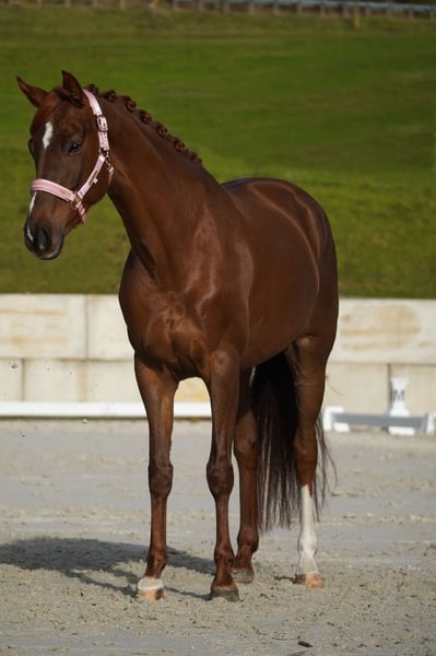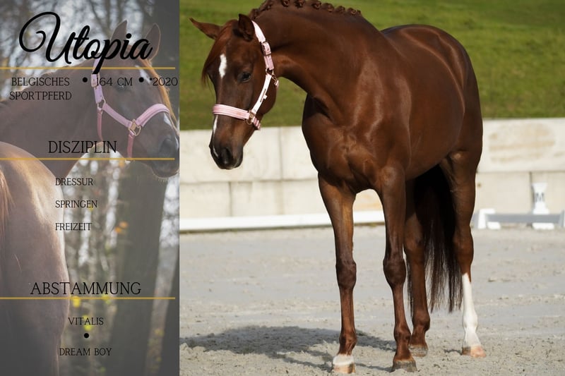 On behalf of the client – the horse is not located with us but in 92348 Berg Utopia is an SBS – Belgian Sport Horse mare, born in 2020, approximately 16.1–16.2 hh, sired by First Step Valentin out of Vitalis, Vivaldi, Florestan, Ferro. *Utopia* is a stunning and very cool mare with excellent movements. She has completed dressage training up to Level A, moves beautifully in the arena, and is very relaxed and confident. She is rideable, not hot-tempered, and a true pleasure to handle. She is suitable for riding, remains calm in the terrain alone or in a group, and is very brave and resilient. She also jumps politely over logs. An all-rounder for sport and leisure, she handles traffic, noise, tarps, and more with complete ease! BE SURE TO WATCH HER VIDEO! She is very affectionate and gentle in handling. She already has a comprehensive health certificate. This picture-perfect horse should not be missed. On behalf of the client, due to time constraints. The horse is not located with us but in 92348 Berg. A current video can be found in the listing or at the following link: https://www.youtube.com/watch?v=0MCMNQpEuik Horse Dealership Dederichs – Your Partner for Horse Buying Contact & Availability: Inquiries please exclusively by phone at 0173/9792139 Monday – Friday: 09:00 AM – 6:00 PM Saturday: 09:00 AM – 3:00 PM Sunday: Closed Follow us on social media! Experience our daily life with the sale horses on Instagram, TikTok & Facebook at Pferdehandlung Dederichs Trial riding & viewing: • Trial ride: €40 • Holidays: Trial ride €50 • Demonstration by a trainer: €30 (ground work, riding, etc.) • We also gladly assist with transport to your new home. • Descriptions are subjective assessments by the seller and do not constitute guaranteed properties.