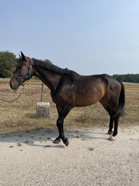 9-year-old gelding, approximately 16.1 hh Has competed in his first pre-competition at 90 cm (video available), ready to go on a 1.05 m course A horse with great quality Does not spook at anything, very good temperament with some bloodlines Up to date with all vaccinations, osteopath, and dentist Visible 25 minutes south of Bordeaux