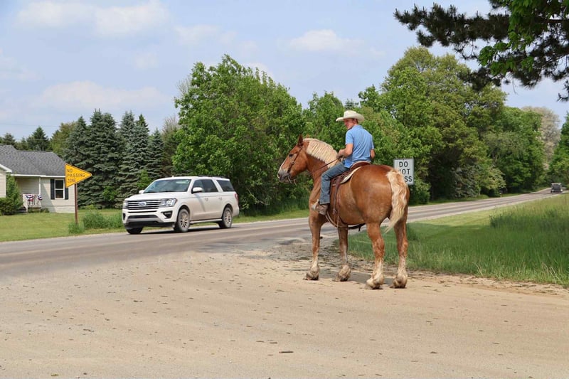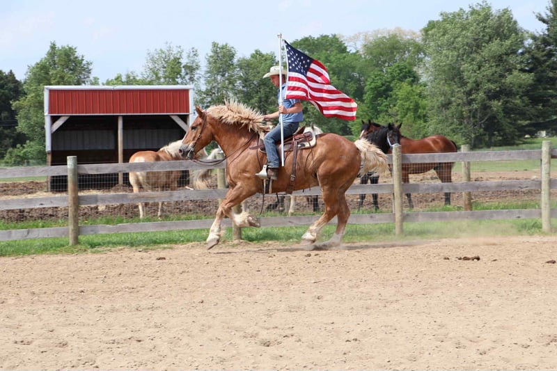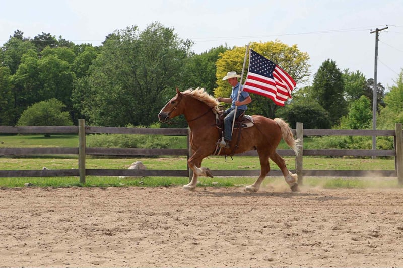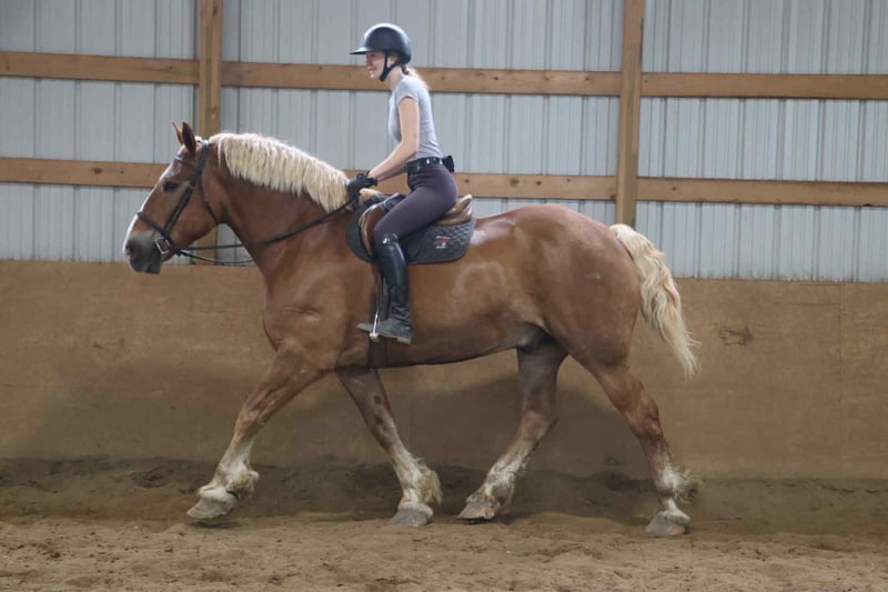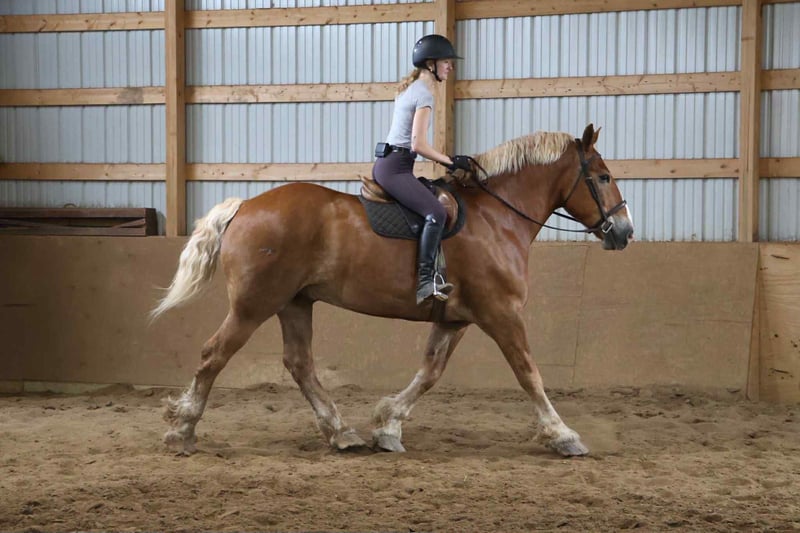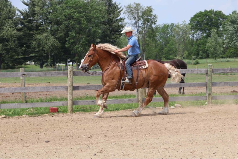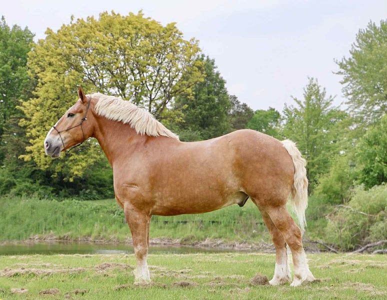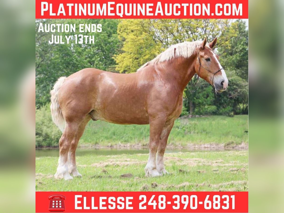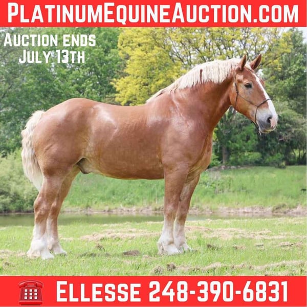 ONLINE AUCTION Place your bids at www.PlatinumEquineAuction.com Starting Bid $3500 Auction ends July 13th 2025 Need a new saddle? Check out White Rock Saddles on our website or Facebook! He’s checking in at 18.2hh at 12 years old! His name is Tiny and he is the definition of a gentle giant. Tiny is a Belgian gelding. He is a beautiful chestnut color with a flaxen mane and tail! Don’t let his size fool you. Tiny can walk, trot, canter with ease! He knows his leads and will transition both upward and down effortlessly. His lope is absolutely delightful. He’s so naturally rhythmical and balanced he could lope a circle in a teacup! He’s got all the makings to be a top vaulting horse with his size and movement. Tiny is very respectful of his people. Anyone any age or size can lead him. Tiny plays well with all of the other horses and ponies outside. Tiny has been ridden down the road, in open fields and in the arena. From gathering up cattle to flat work, to carriage rides he’s got all the training! Tiny is broke both single and double, he’s been in shafts. Tiny has been driven in countless parades and will not bat an eye at the crowds and chaos downtown Detroit has to offer. He is 100% traffic safe under-saddle and in harness. Tiny has been on several hunter paces and loves to explore. He’s been camping as well. Tiny has been trained with natural horsemanship methods. He was once trained to sit and lay down on command! Tiny could go in any direction and would work for a variety of riders. He is quiet and trustworthy enough for the little kids and grandma but fun enough for a more experienced rider. Please enjoy his video. Tiny lives in Howell, MI 48855. Give Ellesse Schwartz a call at 248-390-6831 for more information! ONLINE AUCTION Place your bids at www.PlatinumEquineAuction.com Starting Bid $3500 Auction ends July 13th 2025 Need a new saddle? Check out White Rock Saddles on our website or Facebook!