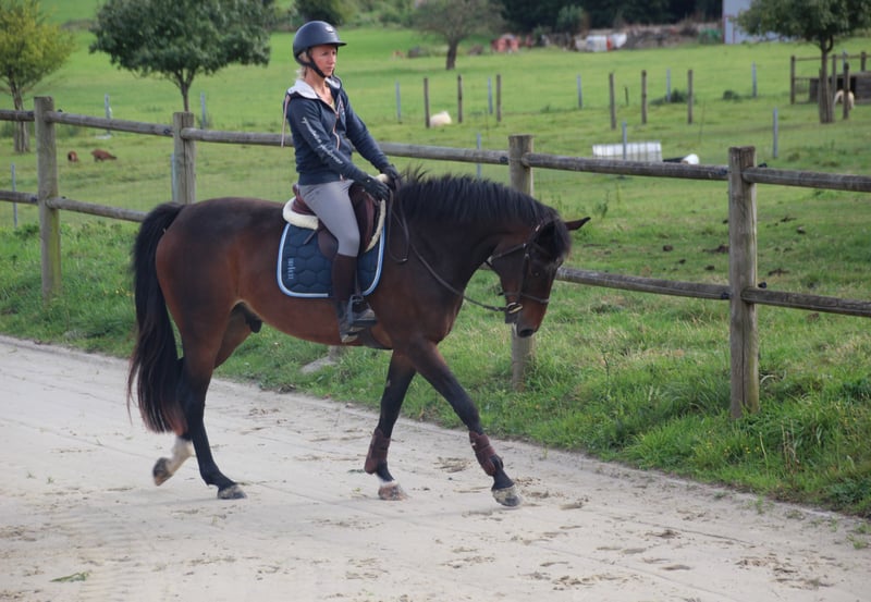 Beau petit cheval de sport au travail depuis un peu plus d'un an. Il a été travaillé dans le calme et en prenant le temps pour les différents apprentissages de base. Tardif, il toise maintenant environ 160 cm. Très attachant, il a besoin de se sentir en confiance et avec un cavalier calme. Travail actuellement essentiellement sur le plat et en extérieur. Bilan radio OK fait à 3 ans et disponible. Ne partira que pour une bonne famille.