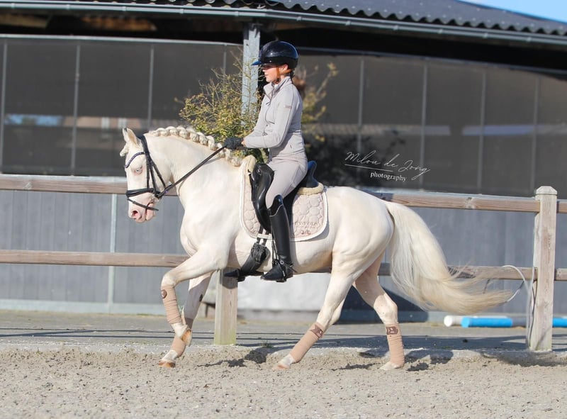 Splendido pony belga di 11 anni, altezza al garrese di 140 cm. Questo splendido cremello si distingue per la sua eleganza e il suo carattere equilibrato, ideale per chi desidera un compagno affidabile nel dressage. Dotato di una conformazione armoniosa e di ottima struttura, il suo temperamento tranquillo lo rende perfetto sia per cavalieri in crescita che per appassionati di disciplina classica. Pronto a conquistare il cuore di chi cerca un pony versatile, ben educato e di qualità