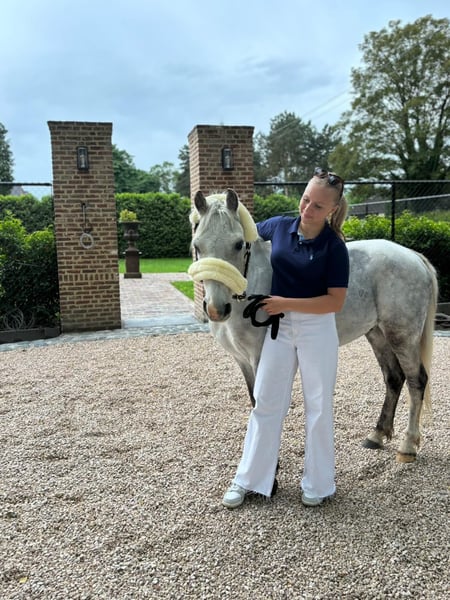 Roobz v/d Deleukstehoeve is a B pony gelding standing at 1.27 m, born in 2013, with a solid and well-thought-out pedigree. He has competed in Lrv BB2 and jumps 80 cm at home. ✅ Sire: Laser van de Mereyt (Rakker-L x Carina) Laser van de Mereyt is known for his correct conformation, reliable character, and good movements. His sire Rakker-L is valued for versatility and rideability, while Carina adds type and a balanced character. ✅ Dam: Damke’s Lydia (Marrenk’s Monty x Lange Voren Poppy) Damke’s Lydia comes from a line of proven children's ponies. Marrenk’s Monty passes on type and a pleasant character, while Lange Voren Poppy is known for her solid exterior and calm nature. ✅ In summary: Roobz combines quality, a suitable size for children, and a reliable pedigree, making him an attractive choice for those looking for a correct and user-friendly B pony.
