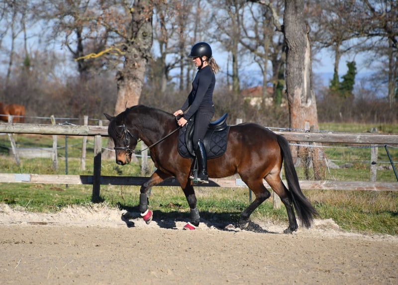 Poney d'avenir prenant 6 ans en 2026. 1m48 Expérience en concours; nombreuses primes en cycles classiques poneys 4 et 5 ans. Très gentil aux soins, vit au pré en troupeau ou boxe. Transport ok Balade seul ou accompagné ok Idéal enfant encadré qui souhaite briller en concours, mais porteur donc possible également petit adulte. A jour vaccins, vermifuges, maréchal, osteo, dentiste, radios ok Visible Loire 42