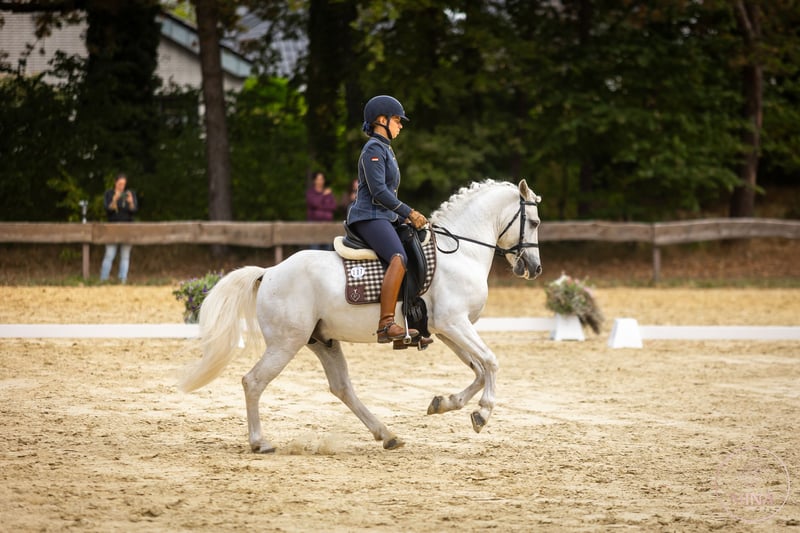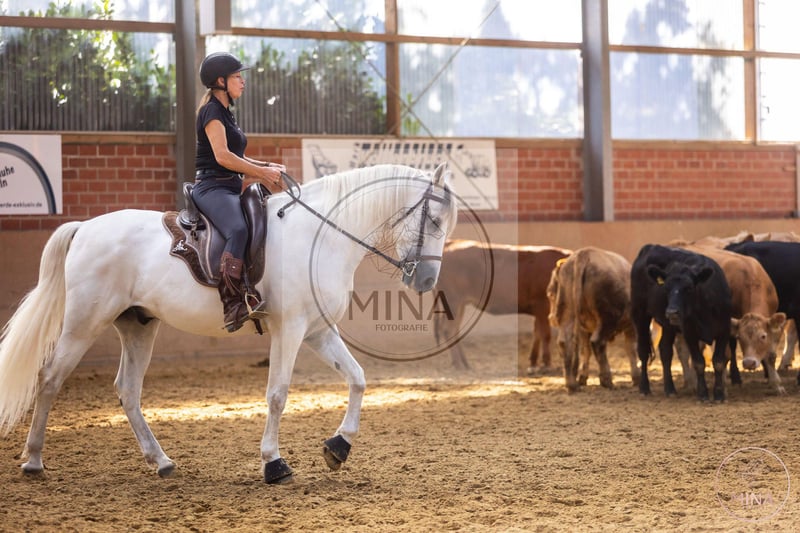 Zarter kleiner Hengst mit Flügeln, Ikarus ist ein sehr temperamentvoller Sohn seines Vaters. Mit dem selben sorgenvollen Augenausdruck wie Ufano schaut er sich alles gern erst einmal an. Um dann die erlernten Dinge auch durchzuziehen. Das Pferd ist in der Ausbildung derzeit sicher bis WE-A (gesiegt und platziert). Er arbeitet bereits gut am Rind und wird von uns weiter mit Freude gefördert. Er besticht durch ausserordentlich gute Bewegungen in Dressur wie Dressurtrail. Zeigt sich auf internationalen Turnieren aber noch immer ein wenig beeindruckt. Was wir gut finden, er wird weder frech, noch übereifrig. Er überlegt und versteht. Er kommt optisch eher nach seinem Großvater Jouvas und auch die schwebenden Bewegungen sind wohl aus der Seite der Anpaarung. Mutter Tres Jolie du Issel ist eine super zuverlässige Stute in Gelände, auf Messen, am Rind. Meine persönliche Lebensversicherung, aus der ich mit Gier mehr Fohlen hätte ziehen sollen. Da unsere Pferde aber maximal alle 2 Jahre nach Abschluss ihrer Ausbildung zur Zucht eingesetzt werden, haben wir bisher erst 4 ihrer wundervollen Fohlen. Für die Qualität leider wenig, aber für meine Einstellung zum Pferd ist jedes davon ein echtes Juwel. Wir sind gespannt, wohin seine Ausbildung in der Kategorie Arbeitspferde / Working Equitation mit diesem Pferd geht. Vielversprechend, feinfühlig, HOT. Eine kleine Granate aus der Camargue.