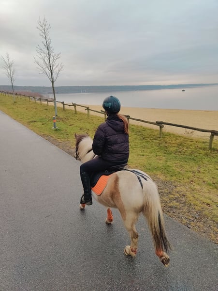 Schweren Herzens gebe ich meine Pony-Stute ab, da ich ihr leider nicht mehr das bieten kann, was sie für ihre weitere Entwicklung braucht. Aus gesundheitlichen Gründen bin ich körperlich nicht mehr in der Lage, den Beritt konsequent weiterzuführen – eine Entscheidung, die mir alles andere als leicht fällt. Mit einem Stockmaß von ca. 1,20 m deckt sie kleine Kinder und Jugendliche bis etwa 50 kg sehr gut ab. Sie ist in allen drei Gangarten geritten. Im Galopp ist sie noch etwas unsicher und zeigt unter dem Reiter gelegentlich kleine Buckler, was vor allem damit zusammenhängt, dass ich sie aufgrund meines Gewichts und meiner Größe nicht korrekt unterstützen und ausbilden kann. Mit passender, leichter Förderung bringt sie hier jedoch noch viel Potenzial mit. Im täglichen Umgang ist sie ein absoluter Schatz: 🧡 Sie liebt Kinder und ist sehr geduldig 🧡 Steht brav und ruhig beim Putzen, auch wenn mehrere Kinder gleichzeitig um sie herum sind 🧡 Lässt sich lieb und zuverlässig führen Auch gesundheitlich bringt sie beste Voraussetzungen mit: ✔️ Kerngesund ✔️ Keine Hufrehe, keine Fehlstellungen oder sonstige bekannte Erkrankungen ✔️ Nicht beschlagen und kommt sehr gut Barhuf zurecht Sie ist vielseitig einsetzbar: ✨ Zieht brav Schlitten und Kutsche, auch nach längerer Zeit reicht eine kurze Auffrischung ✨ Läuft zuverlässig an der Longe ✨ Seitengänge im Schritt sind bereits gut angelegt, mit schönem Untertritt ✨ Wurde erst vor wenigen Jahren angeritten und ist daher noch unverbraucht ✨ Läuft beim Ponyreiten ebenfalls sehr brav Sie ist ein Pony, dem die Arbeit sichtlich Freude macht. Auch kleine Zirkuslektionen oder abwechslungsreiche Beschäftigung machen ihr großen Spaß. Aus diesem Grund möchte ich sie nur sehr ungern als reinen Beisteller abgeben – sie möchte beschäftigt und gefördert werden. Ich wünsche mir für sie ein liebevolles Zuhause, gerne mit Kindern, bei Menschen, die Freude daran haben, ein Pony weiter auszubilden und ihr die Zeit geben, die sie braucht. Sie dankt es mit Motivation, Lernfreude und einem ganz großen Ponyherz. 💛 Equidenpass und Eigentumsurkunde ist selbstverständlich vorhanden