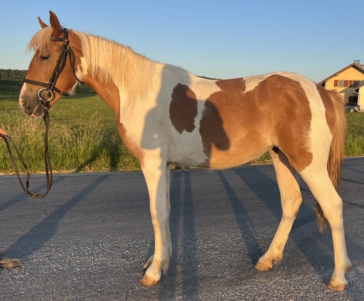 Cette magnifique jument au caractère chaleureux offre un large éventail de possibilités pour différentes disciplines à l'avenir. Cette jeune dame peut faire 4 GG et peut s'occuper de chaque enfant grâce à son caractère. Elle connaît les sorties en extérieur et n'est pas peureuse. Le maréchal-ferrant et le transport ne posent aucun problème. En groupe, elle est très facile. Pour toute question, n'hésitez pas à me contacter.