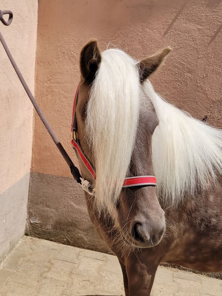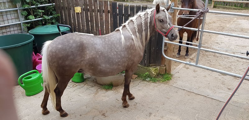 Wunderschöne junge Ponystute – brav, klug & farblich ein Highlight Farbe: Braun-Windfarben / Braun-Silber Eignung: Kinderpony, Zucht, Freizeit Rasse: Classic Pony Josephine ist eine außergewöhnlich hübsche und sehr kluge junge Ponystute, die voll und ganz im Typ ihrer Rasse steht. Ihre besondere Farbgebung macht sie zu einem echten Blickfang: Im Sommer zeigt sie deutlich sichtbare Scheckpunkte und trägt eine helle, fast silbrige Mähne – ein seltenes und sehr attraktives Erscheinungsbild. Josephine zeigt sich im täglichen Handling absolut brav und zuverlässig. Sie kennt bereits: Hufbearbeitung, Spazierengehen, Fellpflege, Waschen und ist Anlongiert. Dabei ist sie stets aufmerksam, freundlich und lernbereit – ein tolles Fundament für ihre weitere Ausbildung. Josephine ist regelmässig entwurmt und geimpft. Zukunftsperspektive: für Josephine wünschen wir uns ein liebevolles Zuhause, in dem sie ihre Talente entfalten kann. Sie eignet sich hervorragend als: Kinderpony (nach weiterer Ausbildung), Zuchtstute dank ihres interessanten Pedigrées oder als Freizeitpony für eine Familie, die ein unkompliziertes Jungpferd sucht. Die Fotos zeigen Josephine vom Fohlenalter an. Das Video zeigt sie im Winterfell, wie sie aktuell aussieht, im Alter von ca. 1,5 Jahren.