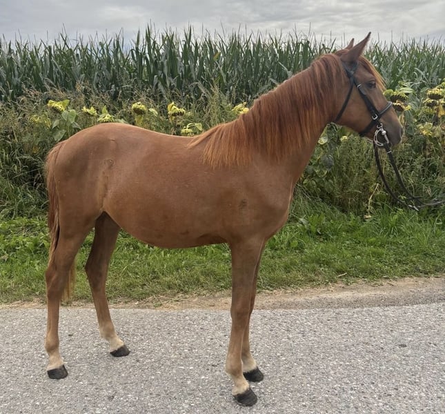 Diese Stute hat eine Widerristhöhe von 135 cm und zeichnet sich durch ihren pflegeleichten, braven und unerschrockenen Charakter aus. Sie beherrscht die vier Grundgangarten und ist problemlos in der Lage, alleine auszureiten. Derzeit wird sie intensiv auf Springturniere vorbereitet, wobei sie sich trotz ihrer noch jungen Ausbildung als äußerst talentiert erweist. Die Stute ist mit dem Hufschmied vertraut und steigt ohne Schwierigkeiten in jeden Anhänger ein. Ein TÜV kann auf Wunsch gerne durchgeführt werden. In einer gemischten Herde zeigt sie keinerlei Probleme im Umgang mit anderen Pferden. Sie eignet sich hervorragend für Reiter, die ein verlässliches und talentiertes Pferd suchen, das sowohl für Freizeitaktivitäten als auch für den Turniersport geeignet ist. Für weitere Informationen oder bei Fragen stehen wir Ihnen gerne zur Verfügung.