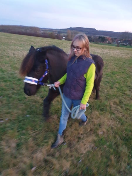 Wir verkaufen einen super lieben,artigen Classic Pony Wallach.Leider sind unsere Kinder aus ihm heraus gewachsen und wir würden uns freuen,wenn er nochmal ein Kind zum strahlen bringt.Er ist verträglich mit allen Pferden und geht jedem Ärger aus dem Weg.Er wurde von meinen Töchtern frei im Gelände in der Gruppe und auch alleine geritten,auch läuft er artig an der Longe.Er macht kleine Sprünge und die Kinder können ihn alleine putzen und führen.Auch ist er nicht schreckhaft,er hat allerdings schon etwas Go,ist aber immer händelbar und sollte ihn doch mal etwas erschrecken bleibt er einfach nur stehen. Bei den Vorbesitzern wurde er auch gefahren,bei uns lief er nur mal zum Spaß vorm Schlitten. Leider muss man etwas wegen Rehen aufpassen,bei uns stand er aber immer problemlos mit auf der Wiese,er ist halt sehr leichtfuttrig.Trägt bei uns im Gelände Hufschuhe,diese kann er gerne mit ins neue Zuhause nehmen.Restliches Equipment bringt er auch mit.