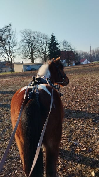 4 jähriger Wallach sucht neue Aufgabe im Freizeitbereich, evtl. für therapeutisches Reiten und/oder Kutsche fahren. 1,20 m groß , stabil gebaut, Angeritten &/- gefahren (Schlitten, Egge). Absolut Zaun- & Geländesicher, brav im Umgang, liebt Kinder und ist sehr lernwillig. Verkaufe ihn gern mit kompletten Zubehör (Einspännergeschirr aus Leder, Sattel usw...) Alles weitere gerne persönlich.