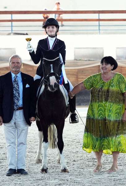 Yakari cerca una nuova famiglia. Ha 7 anni, è un pony gelding dal grande cuore, attualmente in competizione a livello LS. È stato due volte campione nella categoria pony e junior in Slovacchia centrale per l'anno 2025. Ha conquistato il primo posto nella Coppa di dressage pony per la stagione 2024. In campo junior, si è piazzato terzo nel campionato MSR, con una prima prova al 66,6% e una seconda al 66,09%. Yakari ha gareggiato con successo a livello L-LS, ottenendo numerosi piazzamenti di rilievo anche all'estero (Repubblica Ceca, Ungheria). È affidabile in passeggiata, sia in compagnia che da solo. Completamente sicuro per la monta e la manipolazione. Yakari cerca una famiglia affettuosa con un cavaliere ambizioso. Radiografie chiare. Se siete interessati, contattatemi.