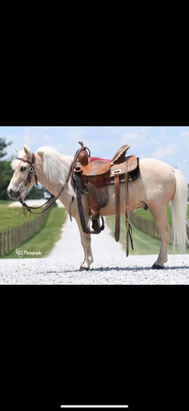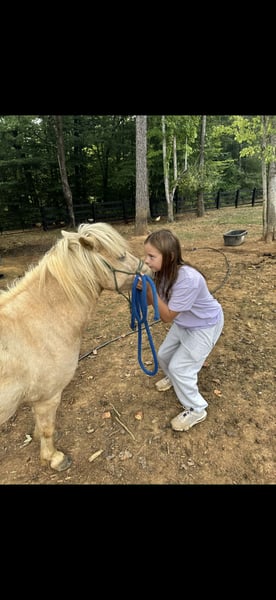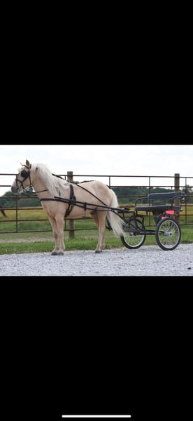 Thunder came to us from Pandarosa Miniature Ranch. He was well trained and could pull a buggy. We have several miniature highland calves and with 4 kids we just don’t have the time necessary to keep him well ridden. He’s beautiful, extremely smart and loves treats! Looking for a home with other horses/ponies so he won’t be lonely and can be re-trained to ride!