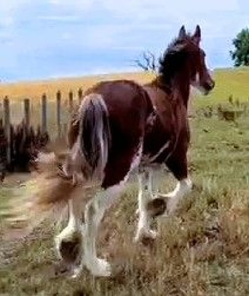 This beautiful pedigree registered well bred Clydesdale filly is just the right age for training. She has really good conformation and already had success in the show ring. She is well handled and has a lovely sweet nature and is very easy to manage. Good on her own or with other horses. Very good action. Gorgeous mane and tail. Exceptionally pretty head. UK and worldwide. sheila@shiresandclydesdales.com