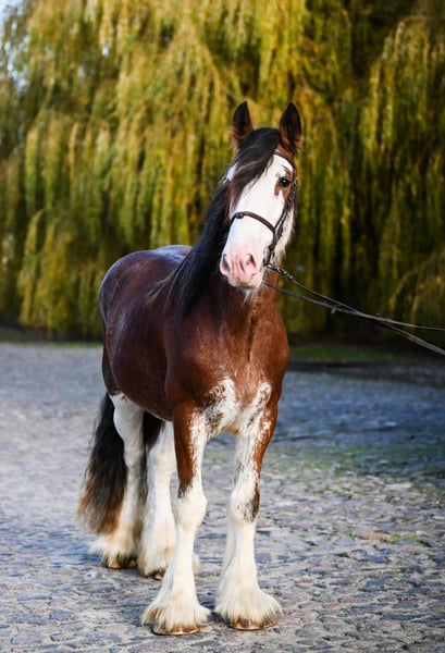 For sale: a beautiful Clydesdale stallion born in 2022. The horse is well-started and moves in all three gaits. Perfect for recreational riding. He is not afraid of cars and has already been ridden outdoors. An excellent choice for those who appreciate calm and friendly horses that are suitable for everyday rides and leisure activities. Please contact me for more information and to arrange a viewing.