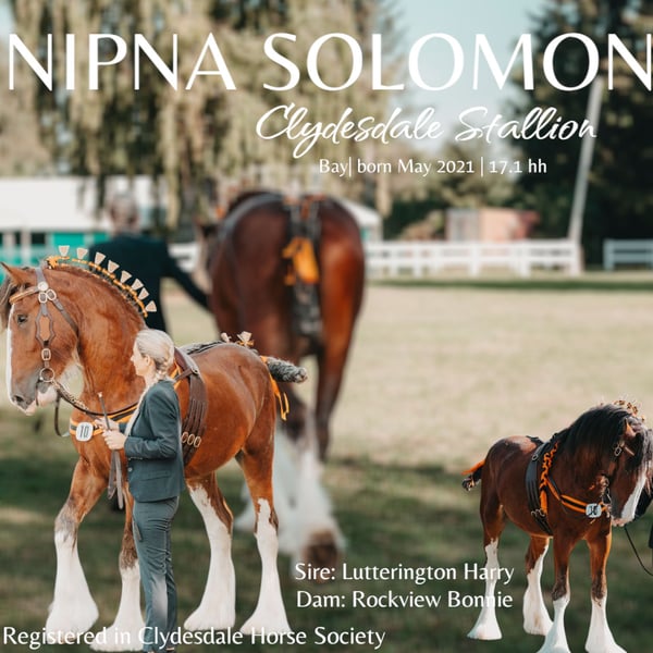 》》》DECKHENGST《《《 🎗 CLYDESDALE HENGST NIPNA SOLOMON🎗 Unser vollregistrierter und gekörter Clydesdale Hengst "Nipna Solomon" steht erstmalig der Damenwelt zur Verfügung. Ein Traumhengst der durch sein Exterieur und seinen Top Charakter besticht. Sehr Menschenbezogen und in der Haltung unproblematisch. Er wird von mir gebisslos in der Freiarbeit gearbeitet, steht im Sommer mit Wallachen und Hengsten 24/7 zusammen. Trotz Stuten am Stall bleibt der Hengst entspannt und ist immer lernwillig bei der Arbeit dabei. Farbe: Bay | geb. Mai 2021 | 4x weiß | seidige,volle &lange Federn |1,79 cm Sire: Lutterington Harry Dam: Rockview Bonnie Registriert und gekört von der Clydesdale Horse Society Standort Deutschland | 61200