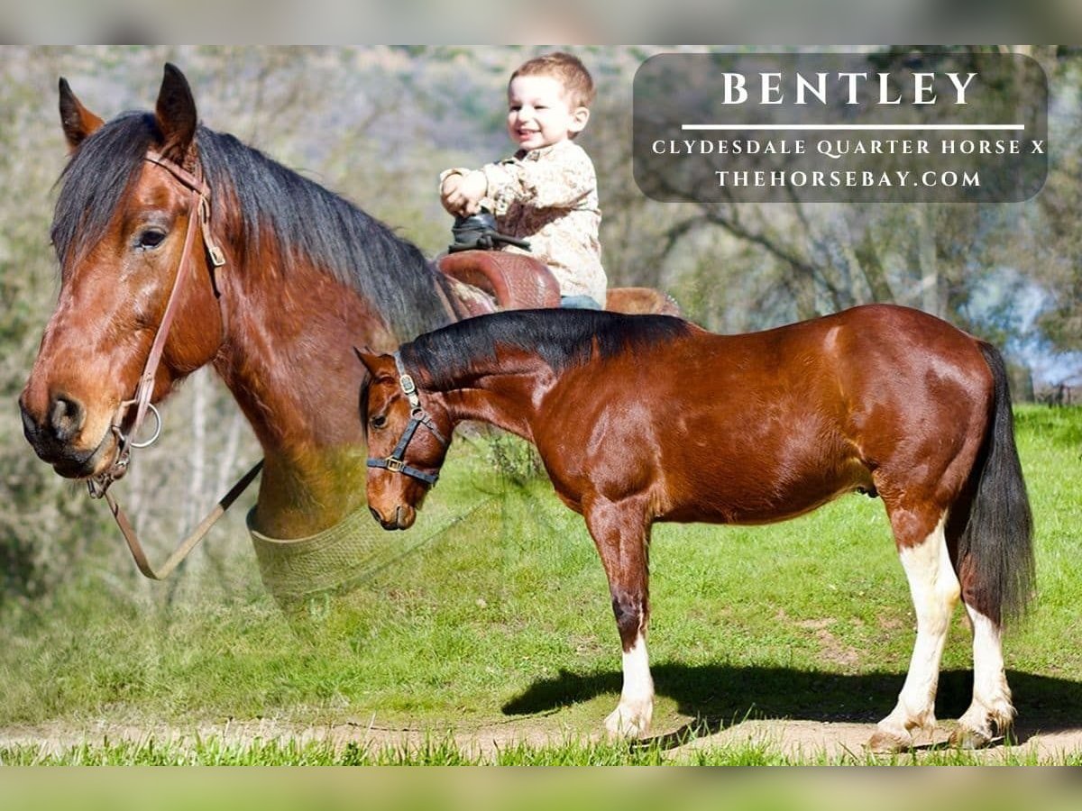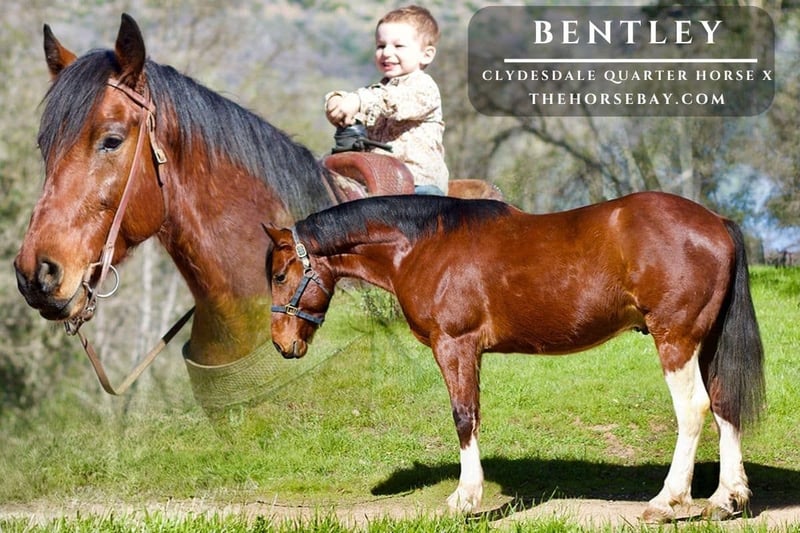 Meet Bentley, a 6-year-old Clydesdale / Quarter Horse cross gelding standing a solid 16hh with the kind of personality and versatility that is hard to find. This is the type of horse that makes riding fun, confidence-building, and memorable every single time you swing a leg over. Bentley is SAFE, broke, and an absolute blast to ride. He has been our trusted travel partner for years and has trail ridden all over the country, visiting multiple national parks and experiencing more scenery and terrain than most horses ever will. He has been to Yosemite National Park, Rocky Mountain National Park, and Sequoia/ Kings Canyon National Park. From mountains to wide open spaces, he handles new places with a calm, willing attitude. He is fancy broke with all the buttons you could want. He neck reins, side passes, moves easily off leg pressure, rides bridleless, rides bareback, can go bitless, and is comfortable in English and western. Bentley has also been started over small fences and shows natural willingness and athleticism. Whether you want to hit the trails, play in the arena, or just enjoy a fun all-around partner, he fits the bill. He is a total people horse who thrives on attention and affection. The kids absolutely adore him, and he enjoys being part of the action. His kind disposition and how he seeks you out in the pasture make him a barn favorite everywhere he goes. Bentley is good for the farrier, quiet for the vet, walks right into the trailer (self-loads), hauls well on the road, even on long trips. He is sound with no current maintenance or health issues. He is also up to date on all of his vaccines, wormer, farrier care, and dental care. Bentley is the kind that will take care of his rider while still being fun and responsive enough for someone who enjoys a well-trained, versatile gelding. Horses with this much real-world experience, personality, and stunning looks don’t come around often.