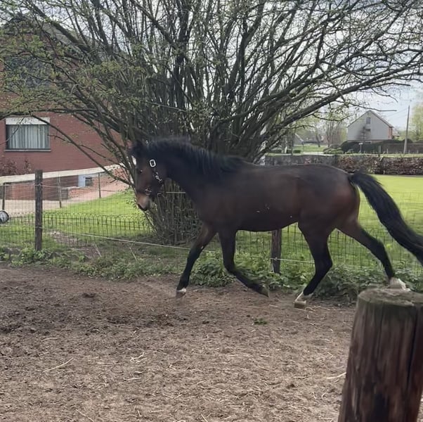 2-jarige hengst met een verwachte stokmaat van e-pony. Reeds bij de smid geweest, ontwormd en gechipt. Een jonge pony met nog alle mogelijkheden voor de toekomst.