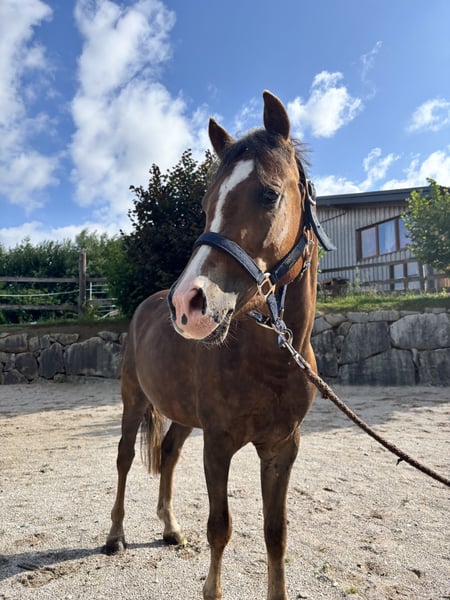 Pony Wallach 4j. Dunkelfuchs Stm. Ca 135cm., kompakter, gefälliger, rittiger Typ mit bestem Charakter und viel Potential für alle Sparten; er ist immer freundlich, neugierig, lernt schnell , ist unerschrocken - ein vielversprechendes Jungpferd, der sich sowohl in Dressur als auch im Springen schnell weiter entwickeln wird, im Umgang unkompliziert und gehorsam, brav und gelassen; - Ein Traumpony für die Zukunft! Wurde leicht angeritten und zeigte sich immer vorbildlich! schmiede u verladefromm, in der Herde verträglich, für Offenstrall geeignet