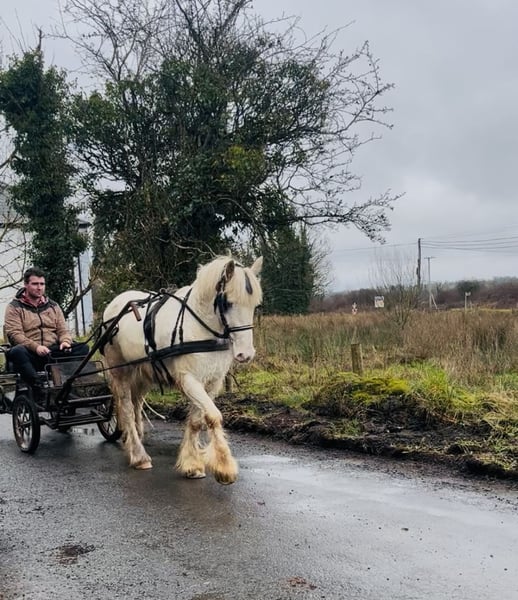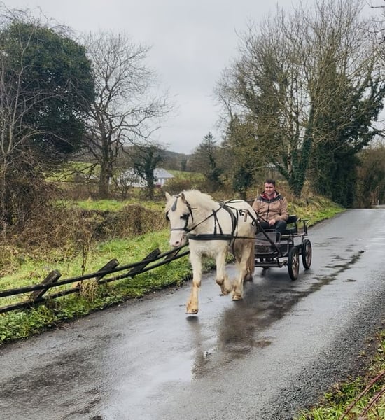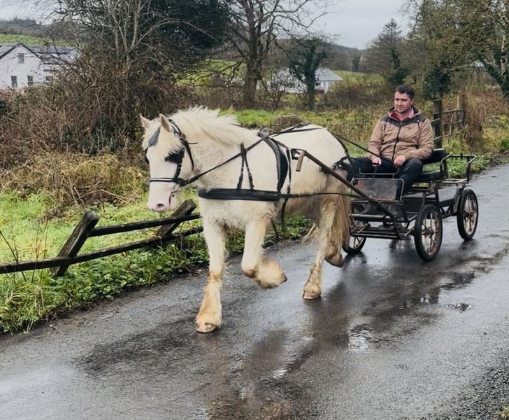 Cold morning is a beautiful Irish cob gelding standing 138cm. He is 4 years old. Trained to ride and also drives the carriage very well! Super fun, trainable pony with a very willing temperament. He is quiet and friendly in all handling. Rides very sweetly and is doing the basics well. He really enjoys jumping training and has lovely balanced paces. In the driving he is very relaxed and moves forward well with the carriage. He has had super training to date and is ready to progress and have fun in his next home. Price €3500 Located in Sligo, Ireland. Regular professional transport available if required. For further information or videos please contact Edward on 00353871412129. All enquiries welcome!