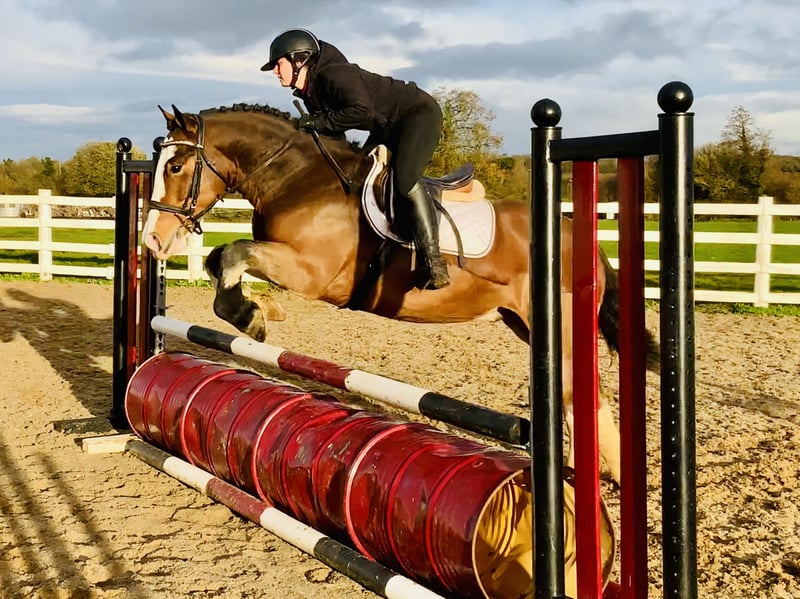 🌟 Duke – Rising 5-Year-Old, 15.1 hh Chestnut Gelding 🌟 Show Cob Quality • Clever Allrounder • Honest and Willing Introducing Duke, a promising 5-year-old chestnut gelding with exceptional presence and true show cob character. This beautifully conformed young horse features an elegant head, friendly eye, strong build, and excellent conformation. A genuine “Four-Ecken-Pferd” with the expression and presence to stand out everywhere. ⭐ Exterior & Presence Duke is a true cob type – naturally striking and well-built. His friendly expression and solid, well-balanced physique make him an ideal future show cob. • 15.1 hh, rising 5-year-old chestnut gelding • Noble head, friendly eye, strong foundation • Correct, muscular, and well-proportioned conformation ⭐ Movement & Training Duke is soft to ride, willing, and demonstrates three very good basic gaits. His trot is light and floating, his canter uphill and balanced. He works in a natural, relaxed frame and learns quickly – always eager to do his best. • Three expressive, balanced basic gaits • Floated trot, uphill canter, soft mouth • Fast learner, moves in a lovely outline ⭐ Terrain & Cross Country This cob is a pleasure to ride in any environment. He is confident in open fields, excellent in traffic, and honest over XC jumps and colorful poles. Duke has shown remarkable maturity in cross country. He would be perfect for hunting, hunter trials, or riding club activities. • Traffic-safe and reliable in open fields, alone or in groups • Honest over colorful poles and XC jumps • Jumps banks, ditches, coffins, water – ears always forward ⭐ Character & Suitability Duke has a calm, friendly temperament and a willing attitude, making him suitable for many riders. He is straightforward, well-behaved to ride, and enjoys working. Ideal for: • Beginner riders • Mother-daughter teams • Riding schools • Anyone looking to develop a genuine young allrounder ⭐ Carefree Package Duke has no stable vices and is open to any pre-purchase examination. The price includes delivery anywhere within the UK and the option to exchange if not fully satisfied. 📞 Contact Phone: +44 86 807 7626 Email: gertytynan@gmail.com Watch his video to see Duke’s presence, movement, and honesty firsthand. A young cob with talent, character, and limitless potential.