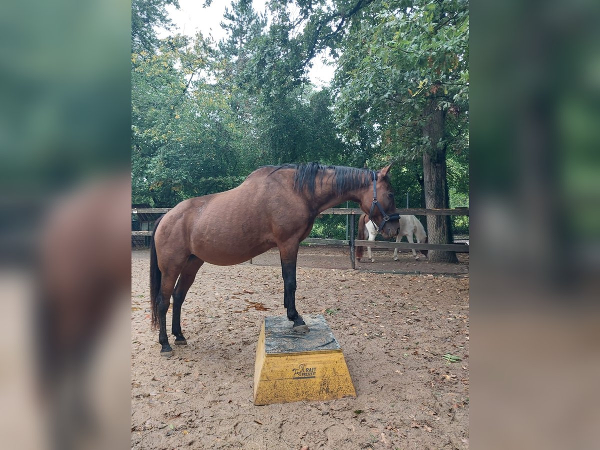 Our 13-year-old Quarter Criollo cross mare Libi is looking for a new home. Libi is approximately 1.47 meters tall and was originally brought to us for children's pony riding. Unfortunately, it turned out that she is not suitable for that purpose. We are offering her as a companion horse, as she is relatively untrained and currently not in active training. Her musculature would need to be developed initially. She is familiar with the terrain and motivated when out riding. In handling, she is attentive and well-behaved – she enjoys walks and groundwork. She is also very gentle and easy to handle at the farrier. Currently, she is barefoot, but she has also been shod before. With patience and targeted training, Libi can certainly become a wonderful leisure partner. We would be happy to find a new suitable home for her. Please feel free to contact us with any questions or if you're interested.
