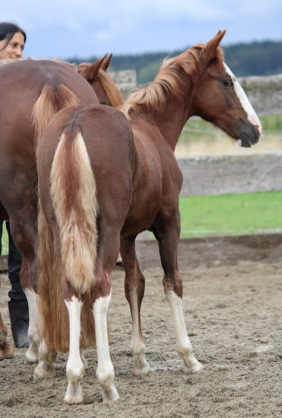 BES Davino fue premiado en su inscripción, actualmente estamos deslembrajándolo y está listo para mudarse a su nuevo hogar. En este momento está en su muda de pelo, por lo que muestra su hermoso color y llamativos marcas. Hereda la crin y la cola claras de su madre y tiene bonitas manchas blancas en las patas traseras con una marcada señalación. Tiene un tipo compacto y robusto, ya muy bien musculado, y será capaz de rendir en todas las disciplinas. Su padre es Donatello del HS Corral, y su madre es Anchuna HS, descendiente del semental de élite Negro Nostalgioso. Desde que fue destetado, vive conmigo como parte de la familia. Davino aún crece de forma natural en la manada en un paddock abierto, pero por supuesto está familiarizado con personas, perros, tractor, coches, cargadora, scooter, etc. Mis caballos no conocen los boxes y deseo seguir manteniéndolos en paddock con acceso a la manada. Ya sale solo con su amiga a jugar y cada día se vuelve más confiado. Nos encantaría recibir consultas amables con una breve información sobre la forma de cuidado, planes, etc. Para cualquier pregunta, no duden en contactarme: 01729919663.