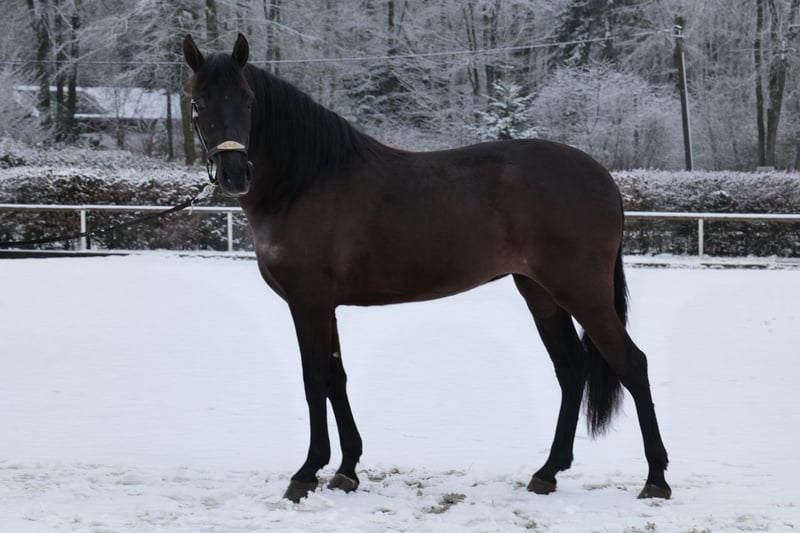 Name: Mora Rasse: Cruzado, Kreuzung Geschlecht: Stute Geburtsdatum: 10.10.2023 Alter: 3 Stockmaß: 1.50m Farbe: Rappe Abstammung: ohne Abstammungsnachweis Charakter: menschenbezogen, neugierig, intelligent, lernwillig, mutig, geduldig, gelassen, unglaublich liebes Jungpferd Ausbildung/Eignung: longiert, Bodenarbeit, Dressur, Freizeit, Barock Geländeerfahrung: aufmerksam, nervenstark, zuverlässig, unerschrocken, alleine und in der Gruppe Gesundheit: entwurmt, geimpft, Barhufer, ekzemfrei, Zähne kontrolliert, ostheopatisch behandelt Haltung: Box, Offenstall Besonderheiten: schmiede und verladefromm, herdenverträglich Die genannten Eigenschaften beruhen auf unserer persönlichen Einschätzung und stellen keine zugesicherten Merkmale dar. Preis: 6900 (Bruttopreis) Haben wir ihr Interesse geweckt? Um Ihnen einen besseren Eindruck von Mora zu geben, senden wir Ihnen sehr gerne Ihr Reitvideo zu. Selbstverständlich stehen wir Ihnen für eine ausführliche Beschreibung des Pferdes, persönliche Beratung und zur Beantwortung aller Ihrer Fragen auch telefonisch zur Verfügung. Bitte schreiben Sie uns hierfür jederzeit eine WhatsApp Nachricht, oder rufen unter folgender Telefonnummer an: +49 15119487595 Unsere Telefonzeiten sind täglich von 7:00 - 13:30 sowie ab 20:00Uhr. Wir freuen uns über Ihre Kontaktaufnahme! Eine klinische oder Röntgenologische Ankaufsuntersuchung kann gerne vom Tierarzt Ihrer Wahl durchgeführt werden. Natürlich kann Mora sicher und komfortabel in ihr neues Zuhause geliefert werden. Wir kümmern uns um alle notwendigen Vorbereitungen und den Transport, damit Ihr neues Pferd stressfrei, gut betreut, versichert und wohlbehalten im neuen Zuhause ankommt. Zurzeit präsentieren wir eine sorgfältig ausgewählte Vielfalt an Verkaufspferden. Bei uns finden Sie garantiert Ihr Traumpferd. Besuchen Sie uns auch gerne auf unserer Homepage unter: www.marvinsroyalhorses.de. Sehr geehrte Kunden, gerne stellen wir Ihnen unsere Pferde vor und führen, putzen, satteln, longieren, Bodenarbeit sowie Probereiten in der Reithalle, auf dem Platz oder im Gelände ist Ihnen möglich, um Ihr neues Familienmitglied näher kennenzulernen. Dieses kostet für ein Pferd 40€, für jedes weitere 30€ und wird beim Kauf wieder erstattet. Unsere Adresse lautet: Grube Ferdinand 50 53577 Neustadt Wied Google Maps: marvinsroyalhorses