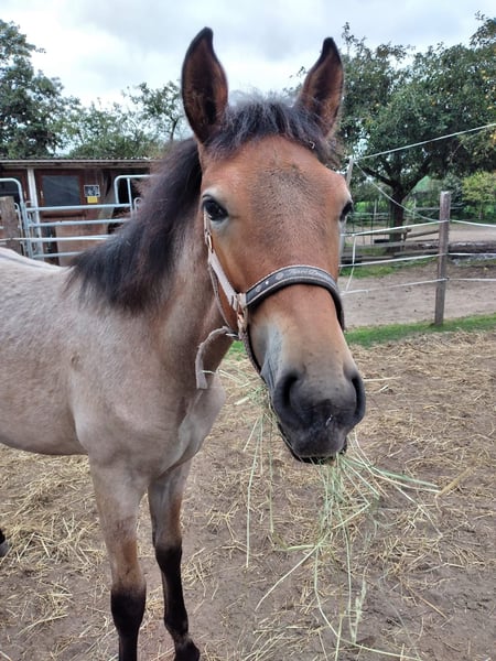 Droomachtige 4-jarige Spaanse merrie met een geweldig karakter en potentieel Te koop aangeboden is mijn liefdevolle 4-jarige Spaanse merrie met een stokmaat van ongeveer 1,65 m. Ze is opgegroeid in een gemengde kudde en toont zich daar altijd sociaal en vriendelijk. Qua karakter is ze rustig, evenwichtig en stevig in haar schoenen, laat zich niet snel uit haar evenwicht brengen en blijft ook in nieuwe situaties kalm. De merrie is tot nu toe voorzichtig opgeleid en vooral vanaf de grond getraind. Ze kent de ruiter al en toont zich daarbij zeer open en leergierig. Met haar gemotiveerde houding en haar heldere hoofdje brengt ze dagelijks plezier in de omgang. Ze is ideaal als toekomstig recreatiepaard en beschikt ook over talent voor springen – met de juiste begeleiding kan ze zich veelzijdig ontwikkelen. Aangezien ze nog in opleiding is en verdere begeleiding nodig heeft, wordt ze alleen afgestaan aan ervaren handen die haar tijd, geduld en consequente, liefdevolle training kunnen bieden. Een geweldig paard voor iemand die plezier heeft in het verder opleiden van een jonge, eerlijke paard en een langdurige partnership wil opbouwen.