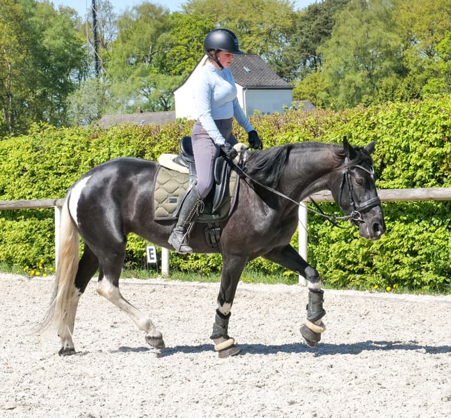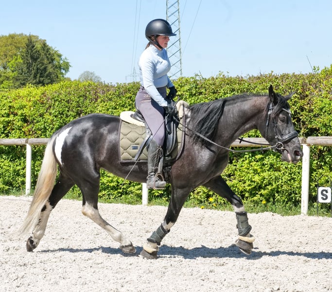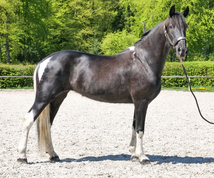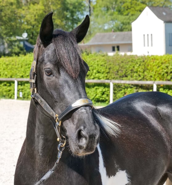 Name: Tormenta Breed: Crossbred Gender: Mare Date of Birth: October 21, 2020 Age: 6 years Height: 15.0 hh Color: Piebald Pedigree: No pedigree documentation Temperament: Friendly and affectionate, curious, intelligent, eager to learn, patient, calm, brave Training/ suitability: Rideable, dressage, leisure riding, jumping, school horse, suitable for children Trail Experience: Calm under pressure, reliable, fearless, experienced both alone and in groups Health: Dewormed, vaccinated, barefoot, eczema-free, teeth checked, osteopathically treated Stabling: Box stall, open stable Special features: Very comfortable rider seat, farrier and loading confident, herd-friendly Please note that these characteristics are based on our personal assessment and do not constitute guaranteed traits. Price: €8,900 (including VAT) Have we sparked your interest? To give you a better impression of Tormenta, we are happy to send you a riding video. Of course, we are available for a detailed description of the horse, personal consultation, and to answer all your questions by phone. Feel free to contact us anytime via WhatsApp or call us at: +49 151 19487595 Our phone hours are daily from 7:00 AM to 1:30 PM and again from 8:00 PM. We look forward to hearing from you! A clinical or radiological pre-purchase examination can be arranged with your veterinarian. Tormenta can be safely and comfortably delivered to her new home. We take care of all preparations and transportation so that your new horse arrives stress-free, well cared for, insured, and in good health. Currently, we offer a carefully selected range of horses for sale. With us, you are sure to find your dream horse. Visit us also on our website: www.marvinsroyalhorses.de. Dear customers, we are happy to introduce you to our horses and offer grooming, tacking, lunging, ground work, and trial riding in the riding hall, on the arena, or in the field, so you can get to know your new family member better. The fee is €40 for one horse and €30 for each additional horse, refundable upon purchase. Our address: Ferdinand Grube 50 53577 Neustadt-Wied Google Maps: marvinsroyalhorses