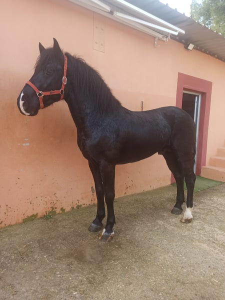 Hispano-Friesian with Passport. Black Coat Age: 3.5 years, intact Baroque type, height approximately 1.57 m (growing) Gentle in handling, grooming, bathing, etc. Currently in the process of breaking and training, not yet ridden. Veterinary check-up OK Vaccinated and dewormed Veterinary examination and trial period at the riding school are accepted. Viewing by appointment only. Transport arrangements possible, both national and international. Francisco ☎️ +34 630 843 283