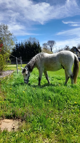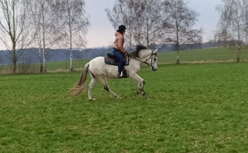 Ein hübscher, bewegungsfreudiger und sensibler Spanierwallach sucht ein Zuhause bei erfahrenen Menschen, die gerne viel Zeit mit ihrem Pferd verbringen, viel Bewegung bieten und sich auf ein Pferd mit anspruchsvollem Charakter einstellen können und möchten. Die Eckdaten: • Rasse: Cruzado, spanischer Mix (importiert roh 2018) • Geboren: September 2015 • Stockmaß: circa 156 cm Die aktuelle Haltung: • steht bei privat in Wallachherde, höher im Rang, selbstbewusst, verträglich • angepasste, bedarfsgerechte Fütterung - kein 24/7 Futter ad libitum wegen Leichtfuttrigkeit • Offenstall, Paddock, stundenweise Koppel, Box nur nachts im Winter Die Gesundheit: • barhuf, Bearbeitung alle 7 Wochen • regelmäßig geimpft, entwurmt, osteopathisch gecheckt zuletzt März 2026 • Zähne gemacht März 2026 • bislang keinerlei Lahmheiten, keine Kolik, kein Ekzem, kein Husten, keine Allergie • keine Melanome Die Ausbildung: • gut erzogen • in allen Grundgangarten gesund erhaltend geritten, aktuell western • Longe, Bodenarbeit, Stangenarbeit • Gelände geritten (meist allein oder zu zweit), spazieren Der Charakter und Eignung: • bewegt sich gerne und viel, für Reiter, die ihn regelmäßig auslasten können • oft extern orientiert, benötigt klare, konsequente Führung mit ehrlicher Grundhaltung und Gelassenheit, um sich anzuschließen • Führung ohne Einengung und Leiten ohne Machtkampf • nicht für Anfänger, Wiedereinsteiger, ängstliche Reiter etc. • kein Gewichtsträger Die Abgabe erfolgt wegen Reduzierung des privaten Pferdebestandes aus gesundheitlichen Gründen. Ein ausführliches Kennenlernen und Probereiten ist ausdrücklich erwünscht. Wir möchten gerne den passenden Menschen finden. Hierbei können wir vor Ort auch noch einmal über den Preis sprechen. Wir freuen uns über seriöse und ehrliche Anfragen über das Portal und geben gerne weitere Auskünfte. Standort: nahe Chemnitz, Sachsen