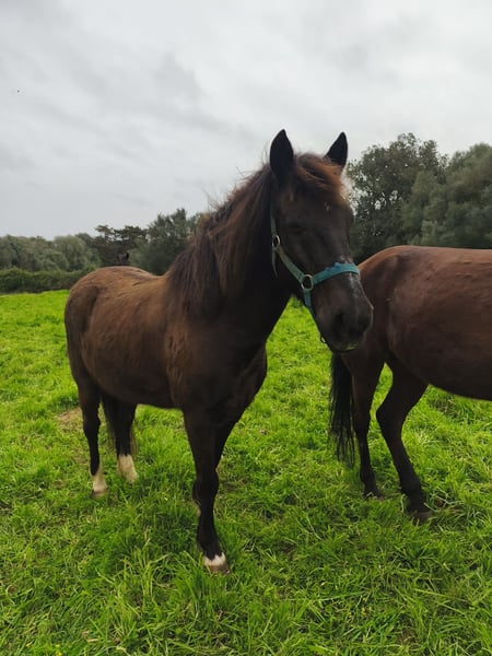 Poni C, con buenas cualidades para el salto, ha estado concursando en 0,60 y 0,70, en casa con recorridos de 0,80/85, y hasta 0,95 en saltos aislados, está trabajando en clases desde hace 10 años. Va sin herrar y nunca ha tenido problemas de lesiones ni cólicos.