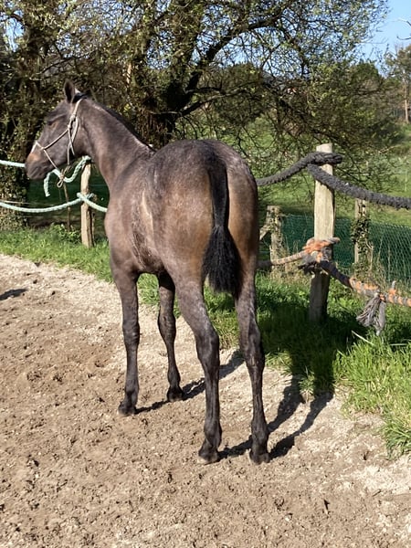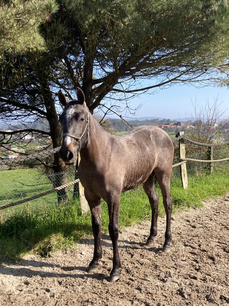 For sale: a very beautiful and gentle three-blood filly with excellent ground manners. She loads easily into the trailer and travels very well. A filly worth breeding.
