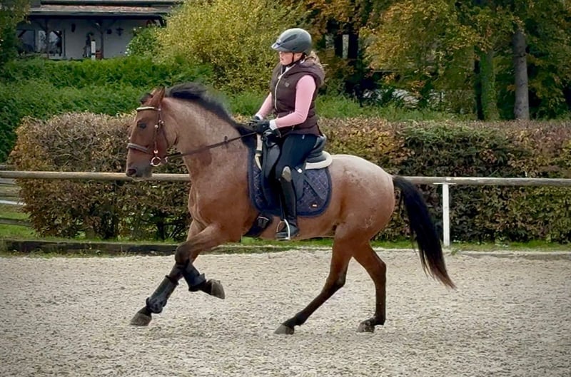 Name: Alentejo Rasse: Cruzado (Kreuzung) Geschlecht: Wallach Geburtsdatum: 10.09.2020 Alter: 5 Stockmaß: 1.50m Farbe: Ruano Red, Rotschimmel Abstammung: nicht bekannt Charakter: verlässlich, neugierig, intelligent Ausbildung/Eignung: geritten, Freizeit, Dressur, Springen, Working Equitation Geländeerfahrung: zuverlässig, alleine und in der Gruppe Gesundheit: entwurmt, geimpft, Barhufer, Zähne kontrolliert, ostheopatisch behandelt Haltung: Box, Offenstall Besonderheiten: sehr sitzbequem, schmiede und verladefromm, herdenverträglich Die genannten Eigenschaften beruhen auf unserer persönlichen Einschätzung und stellen keine zugesicherten Merkmale dar. Preis: 7500€ (Bruttopreis) Haben wir ihr Interesse geweckt? Um Ihnen einen besseren Eindruck von Alentejo zu geben, senden wir Ihnen sehr gerne sein Reitvideo zu. Selbstverständlich stehen wir Ihnen für eine ausführliche Beschreibung des Pferdes, persönliche Beratung und zur Beantwortung aller Ihrer Fragen auch telefonisch zur Verfügung. Bitte schreiben Sie uns hierfür jederzeit eine WhatsApp Nachricht, oder rufen unter folgender Telefonnummer an: +49 15119487595 Unsere Telefonzeiten sind täglich von 7:00 - 13:30 sowie ab 20:00 Uhr. Wir freuen uns über Ihre Kontaktaufnahme! Eine klinische oder Röntgenologische Ankaufsuntersuchung kann gerne vom Tierarzt Ihrer Wahl durchgeführt werden. Natürlich kann Alentejo sicher und komfortabel in sein neues Zuhause geliefert werden. Wir kümmern uns um alle notwendigen Vorbereitungen und den Transport, damit Ihr neues Pferd stressfrei, gut betreut, versichert und wohlbehalten im neuen Zuhause ankommt. Zurzeit präsentieren wir eine sorgfältig ausgewählte Vielfalt an Verkaufspferden an. Bei uns finden Sie garantiert Ihr Traumpferd. Besuchen Sie uns auch gerne auf unserer Homepage unter: www.marvinsroyalhorses.de. Sehr geehrte Kunden, gerne stellen wir Ihnen unsere Pferde vor und führen, putzen, satteln, longieren, Bodenarbeit sowie probereiten in der Reithalle, auf dem Platz oder im Gelände ist Ihnen möglich, um Ihr neues Familienmitglied näher kennenzulernen. Dieses kostet für ein Pferd 40€, für jedes weitere 30€ und wird beim Kauf wieder erstattet. Unsere Adresse lautet: Grube Ferdinand 50 53577 Neustadt Wied Google Maps: marvinsroyalhorses