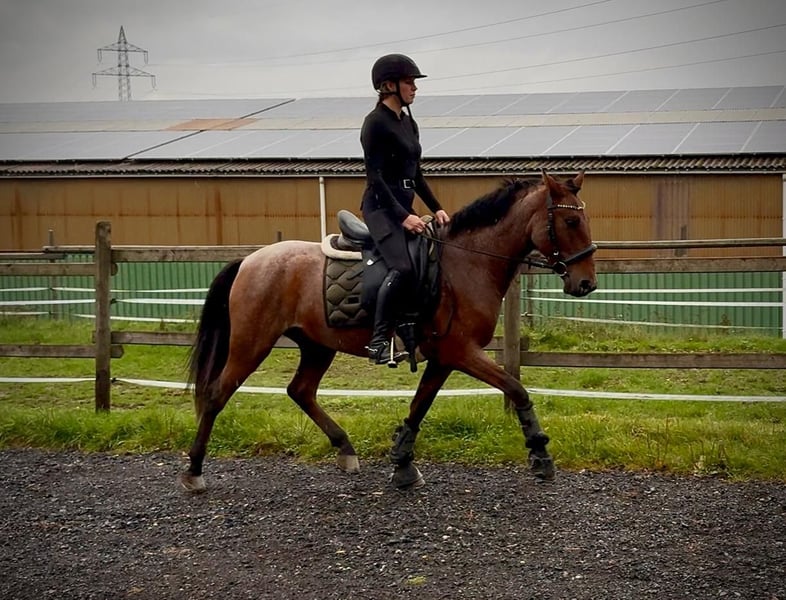 Nom : Alentejo Race : Croisé (croisement) Sexe : Hongre Date de naissance : 10/09/2020 Âge : 5 ans Taille au garrot : 1,50 m Couleur : Rouan rouge Origine : inconnue Caractère : fiable, curieux, intelligent Éducation / Aptitudes : monté, loisir, dressage, saut d'obstacles, Working Equitation Expérience en terrain : fiable, seul ou en groupe Santé : vermifugé, vacciné, pied nu, contrôle dentaire effectué, traités ostéopathiquement Hébergement : box, paddock Caractéristiques particulières : très confortable à la selle, forge et transport sans problème, compatible avec le troupeau Les propriétés mentionnées reposent sur notre appréciation personnelle et ne constituent en aucun cas une garantie. Prix : 7 500 € (prix TTC) Vous avez suscité notre intérêt ? Pour vous donner une meilleure impression d’Alentejo, nous serions heureux de vous envoyer sa vidéo de monte. Nous restons à votre disposition pour une description détaillée du cheval, un conseil personnalisé, ou pour répondre à toutes vos questions, également par téléphone. N’hésitez pas à nous contacter à tout moment par WhatsApp ou par téléphone au : +49 151 19487595 Nos horaires téléphoniques sont quotidiens de 7h00 à 13h30 et à partir de 20h00. Nous attendons votre contact avec impatience ! Une visite vétérinaire ou une radiographie préalable à l’achat peut être effectuée par le vétérinaire de votre choix. Alentejo peut être livré en toute sécurité et confortablement dans sa nouvelle maison. Nous nous occupons de toutes les préparations nécessaires et du transport, afin que votre nouveau compagnon arrive sans stress, bien soigné, assuré et en bonne santé. Actuellement, nous proposons une sélection soigneusement choisie de chevaux à vendre. Avec nous, vous trouverez sûrement le cheval de vos rêves. N’hésitez pas à visiter notre site internet : www.marvinsroyalhorses.de. Chers clients, nous serions heureux de vous présenter nos chevaux. Vous pouvez également faire des visites, brosser, seller, longes, faire du travail à pied ou des essais en carrière, en manège ou en terrain, pour mieux connaître votre futur compagnon. Cela coûte 40 € par cheval, et 30 € pour chaque cheval supplémentaire, montant remboursé lors de l’achat. Notre adresse : Ferdinand Grube 50 53577 Neustadt Wied Google Maps : marvinsroyalhorses