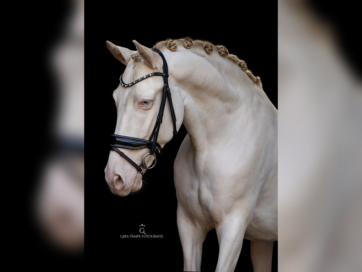 Mit schwerem Herzen biete ich meinen treuen Partner zum Verkauf an. Perano, auch bekannt als Perry, ist ein 6-jähriger Cruzado-Hengst mit einer beeindruckenden Perlino-Färbung und einem freundlichen Ausdruck. Perry ist seit fast vier Jahren mein Eigen, ich habe ihn selbst eingeritten und von Anfang an war er mein allerbester Freund, mit dem ich alles Mögliche gemacht habe – von Freiheitsdressur bis hin zu Turnieren. Er ist ein echter Clown, der die Aufmerksamkeit liebt. Er arbeitet gerne für dich und ist ein wahrer Freund für jedermann. Wir haben mit Freiheitsdressur begonnen, was ihm großen Spaß macht. Er beherrscht bereits einige Tricks, wie Steigen vom Boden, das Überkreuzen der Beine und wir haben mit dem Liegentraining angefangen. Derzeit wird er auf L-Dressur-Niveau trainiert. Perry ist unter dem Sattel äußerst brav, leicht zu reiten und hat eine gute Arbeitsmotivation. Er denkt gerne mit seinem Reiter mit und lernt neue Dinge schnell. Außerdem macht er schöne Springen, was ihn auch für Reiter interessant macht, die Abwechslung im Training suchen. Perry ist auch brav bei Ausritten und lässt sich sowohl allein als auch in der Gruppe gut führen. Er ist verkehrssicher, schaut aber nicht schnell auf. Ob unter dem Sattel oder an der Hand – er verhält sich stets zuverlässig. Er hat einen lieben und vertrauensvollen Charakter, ist angenehm im Umgang und würde für seinen Reiter durchs Feuer gehen. Er ist freundlich zu anderen Pferden und schließt gerne Freundschaften, weshalb er auch gut in eine Herde integriert werden könnte. Zudem ist er äußerst brav auf anderen Geländearten, lädt problemlos in den Anhänger und die Kutsche. Er war bereits beim Ponylager, wo er sich vorbildlich verhielt, und hat mehrfach an Turnieren teilgenommen, bei denen er beim nationalen Iberischen Pferdechampionat 71,8 % und 67,2 % erreichte. Ich stelle ihn mir am liebsten bei jemandem vor, der bereits Erfahrung im Reitsport hat, gerne mit ihm arbeitet und in Zukunft die Dressurwettbewerbe anstrebt. Perry ist kein Anfängerpferd, da er sich manchmal noch etwas aufregen kann und gerne den Clown spielt. Ich suche für ihn einen Platz, wo er viel draußen stehen kann, idealerweise in einer Herde. Insgesamt ist er ein echtes Allround-Talent und ein Lebensbegleiter, mit dem man alles machen kann!