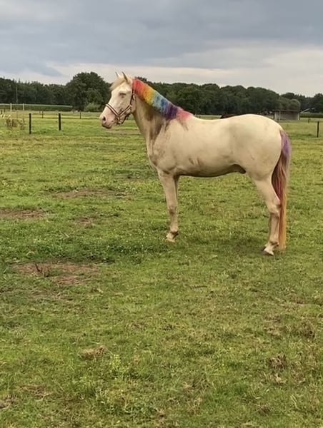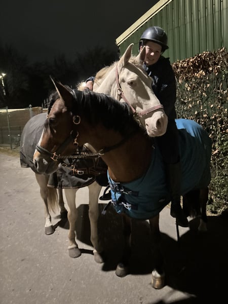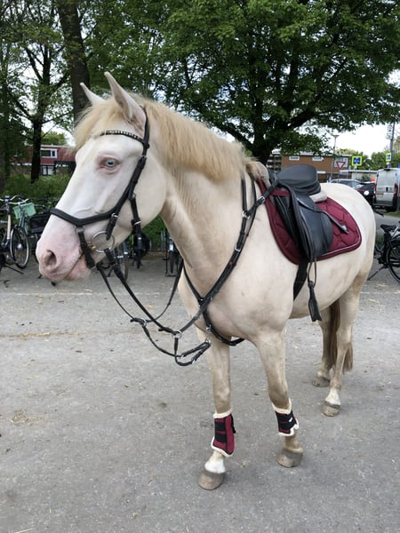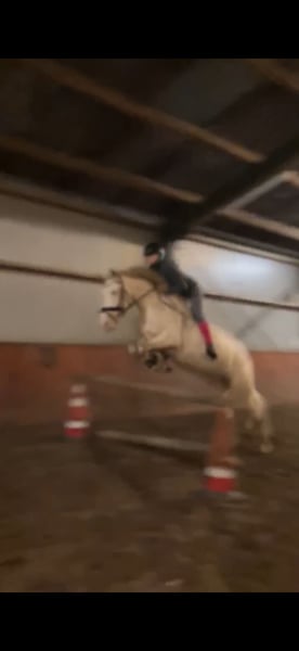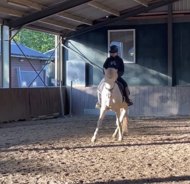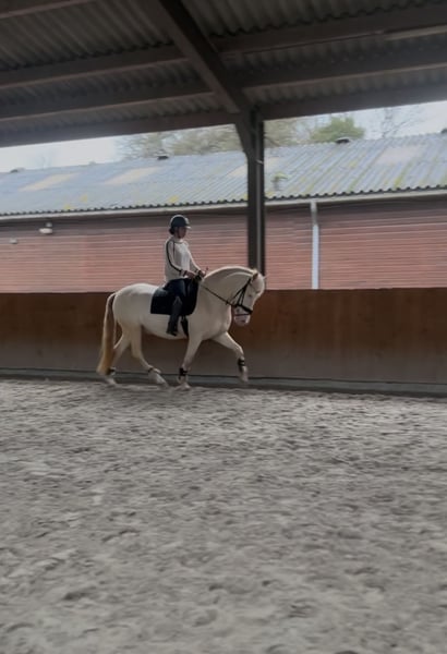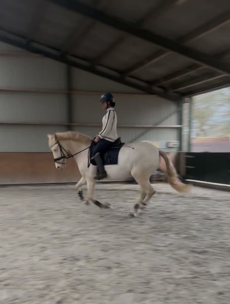 Met pijn in het hart bied ik mijn maatje te koop aan. Perano, of wel Perry, is een 6-jarige Cruzado ruin van 1,60m met een bijzondere perlino kleur en een vriendelijke uitstraling. Perry is nu al bijna 4 jaar van mij en heb hem dus zelf zadelmak gemaakt en vanaf dag 1 mijn allerbeste maatje waar ik al van alles mee heb gedaan van vrijheidsdressuur tot wat wedstrijden. Perry is een echte clown die houdt van alle aandacht. Gaat graag voor je aan het werk en is een echte allemansvriend. We zijn begonnen aan wat vrijheidsdressuur wat hij superleuk vind hij kan dus een paar trucjes zoals steigeren vanaf de grond, voetje en we waren begonnen met liggen. Hij wordt momenteel getraind op L-niveau dressuur. Perano is super braaf onder het zadel en is makkelijk te rijden en heeft goede looplust, denkt graag mee met zijn ruiter en pakt nieuwe dingen snel op. Daarnaast maakt hij een leuke sprong, wat hem ook geschikt maakt voor ruiters die graag afwisseling zoeken in het werk. Perano is ook braaf op buitenrit en gaat makkelijk alleen maar ook met andere paarden. Is goed verkeersmak en kijkt niet snel op. Of het nou onder het zadel is of aan de hand Hij heeft een lief en betrouwbaar karakter, is prettig in de omgang en gaat voor zijn ruiter door het vuur. Is vriendelijk naar andere paarden en maakt graag vriendjes dus zou zeker in een kudde kunnen Ook is hij super braaf op ander terrein en laad makkelijk op de wagen en trailer. Hij is al eens mee geweest op ponykamp, waar hij zich voorbeeldig gedroeg, en een paar keer op wedstrijd waar hij op het nk Iberische paarden eindigde met 71,8% en 67,2% Ik zie hem daarom het liefst bij iemand met rijervaring en die graag met hem aan de slag gaat en in de toekomst de dressuurring in zou willen gaan. Perry is geen beginners paard omdat hij zich af en toe nog wat heet kan maken en graag de clown uithangt! Ik zoek voor hem een plek waar hij lekker veel buiten kan staan, liefst in een kudde. Al met al een echte alleskunner en een maatje voor het leven waar je alles mee zou kunnen!