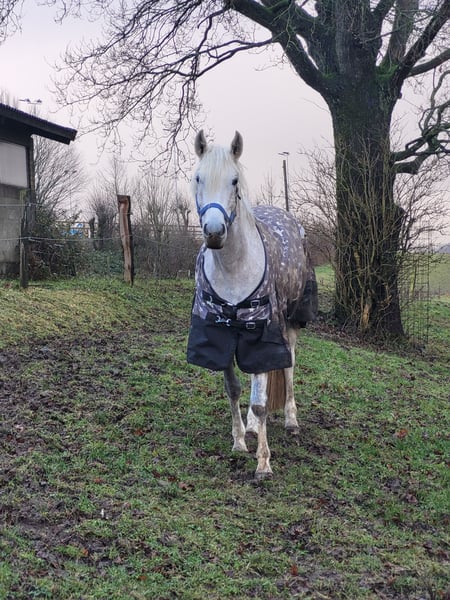 8 Jahre alter Wallach, Stockmaß ca. 156 cm, in beste Hände abzugeben. Guapo ist dem Menschen sehr zugewandt, neugierig und schlau. Er liebt ausgiebige Putzeinheiten und ist im Umgang aufmerksam und brav. Er ist in der Dressur in der Klasse A platziert und dieses Jahr erstmalig zwei Springreiter-Wettbewerbe gestartet, bei denen er in beiden direkt hoch platziert war. Er kennt Dressur-Lektionen der Klasse L (Außengalopp, einfache Wechsel, Kurzkehrt) und springt im Parcours fliegende Wechsel. Er ist ein toller Partner für einen ambitionierten Freizeitreiter oder für ein Kind, das in den Turniersport einsteigen möchte. 2024 wurden Guapos Kniebänder in der Klinik gespritzt, da sie aufgrund genetischer Veranlagung zu lang waren. Seit der Behandlung ist er voll belastbar und kann normal geritten werden. Da eine reine Boxenhaltung die Wirkung der Behandlung in 2024 zunichte machen könnte, benötigt Guapo möglichst täglichen Weidegang. Er kann problemlos mit anderen Pferden zusammen auf die Weide, im Anhänger fahren, etc. Guapo ist regelmäßig geimpft und entwurmt. Er läuft seit mehreren Jahren barhuf, kennt aber auch Eisen.