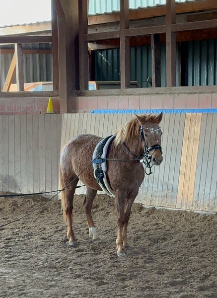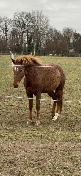 For sale is a lovely Curly Horse mare, born in 2020. She is a red roan and impresses with her unique coat as well as her friendly nature. She has not been extensively ridden yet, but she is always very well-behaved with a rider! She consistently shows herself to be friendly and calm in handling. She is an absolute expert in groundwork and free work, and she enjoys her training sessions. She is completely unshy and accustomed to being in the open terrain, including busy roads and bridges. The mare displays the typical robust and low-maintenance nature characteristic of Curly Horses. Her special coat is hypoallergenic, meaning neither allergy sufferers react to her hair nor to her saliva. We have owned her since birth, so we can rule out any negative past experiences. Cinderella is being sold only reluctantly, and only to the best hands. Priority goes to the right home over the price! If you are interested or have further questions, please feel free to contact me. I would be happy to arrange a viewing so you can meet Cinderella in person!