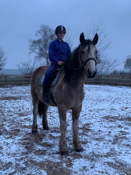 Heavenlysmiles Jolly Jolly ist unsere hypoallergene Curly Horse Stute. Sie ist 1,55 m/1,58 m groß und feiert diesen Sommer ihren achten Geburtstag. Jolly ist eine sehr gute Mutter und hat bereits vier Fohlen zur Welt gebracht. Ihr letztes Fohlen, King, ist gerade geboren, und Jolly ist nun bereit für eine fantastische Reitkarriere 😉 Sie ist angeritten und kann geritten werden, hat aber noch nicht viel Reiterfahrung, da sie unsere Zuchtstute war. Sie ist sehr brav und überaus lieb. Sie wurde immer täglich betreut und war immer von Kindern umgeben. Sie war immer bei uns auf dem Bauernhof, kennt also die Maschinen und die Hoftiere. Ob Sie mit dem Pferdeanhänger zur Show, zum Tierarzt oder einfach nur zum Schwimplatz fahren – Jolly ist rundum zufrieden! Kurz gesagt: Ein fantastisches Curly Horse, an dem Sie viel Freude haben werden! Wir fragen 12.000 € (ohne MwSt.) für sie. Für weitere Informationen senden Sie mir bitte eine Nachricht.
