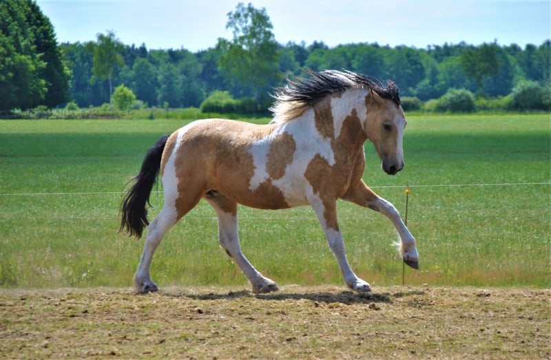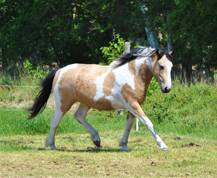 Sehr liebe falbe Schecke Curly Stute 1.55/1.58
