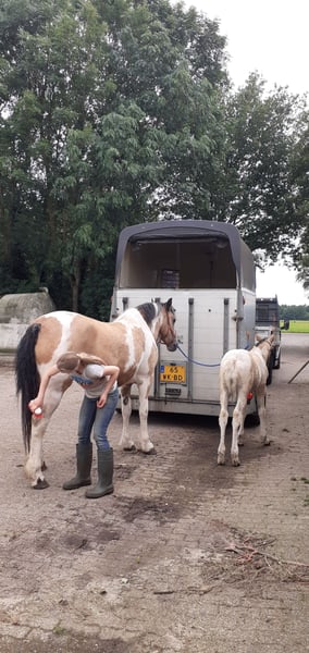Heavenlysmile’s Jolly Jolly is onze hypoallergene Curly merrie. Ze is 1.55/1.58, deze zomer is het alweer 8jaar geleden dat ze bij ons is geboren. Jolly is een zéér goede moeder, ze heeft 4 veulens gekregen. Haar laatste veulen King is net van haar af en Jolly is nu toe aan een geweldige rij carriere 😉 Ze is zadelmak, ze kent het rijden maar verder nog niet veel kilometers gemaakt omdat ze onze fokmerrie was. Ze is zeer braaf en echt heel lief. Is altijd dagelijks in handen geweest en heeft altijd kinderen om haar heen gehad. Ze heeft altijd bij ons op de boerderij gestaan, dus kent ook de machines en de boerderijdieren. Op de trailer mee naar de keuring, de dierenarts of gewoon even lekker gaan zwemmen, voor Jolly is alles prima!! Kortom een geweldige Curly Horse om heerlijk van te gaan genieten! We vragen 12.000Euro excl btw voor haar. Voor meer informatie stuur gerust een berichtje