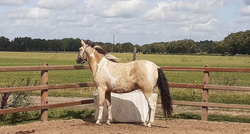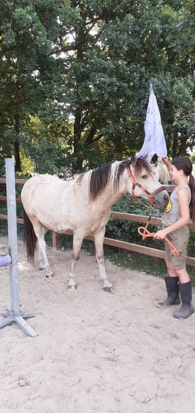 Heavenlysmiles Boomerang ❤ Sucht ihr das süßeste, niedlichste, anhänglichste, hübscheste (bombensicherste) und schönste hypoallergene Curly Pony? Dann habt ihr ihn gefunden! Boomerang ist zwei und halb Jahre alt und hat bereits bewiesen, dass er nicht nur eine goldene Farbe, sondern auch einen goldenen Charakter hat. Was für ein unglaublich süßes Tier! Geboren in unserem Garten, verbrachte er die ersten sechs Monate im Garten, also täglich in den Händen von uns und fünf kleinen Kindern. Spielen mit dem Hund und seine Lieblingsbeschäftigung war das Spielen mit der Wäsche – oder besser gesagt, sie von der Leine zu ziehen und dann mit der Wäsche wegzurennen. Jetzt läuft Boomerang in der gemischten Herde auf der großen Weide. Er ist sehr bodenständig, kein Boss und nicht unterwürfig. Der ideale Wallach für jede Herde! Boomerang ist jetzt zwei und halb Jahre alt und bereits kastriert. Er wird etwa 1,40/1,42 groß und ist schön breit gebaut. Am 20., 21. und 22. Juni fuhr Boomerang mit Sky zum Bauern- und Landfest in Aalten. Es waren Tausende von Besuchern da, und er genoss jeden Tag die ganze Aufmerksamkeit. Er kam immer wieder zu allen, um zu kuscheln! Die ungewöhnlichen Dinge wie Musik, Fahnen, Sonnenschirme, Traktorparaden – zu viele, um sie alle zu erwähnen – fand er alles super! Auch die Vorführung im großen Ring zur Förderung der Curly-Rasse und der große Applaus waren für die Jungs kein Problem! Für das Fest und abends zur Unterkunft musste er mehrmals täglich auf den Anhänger. Die Kinder können das problemlos mit ihm machen. Boomerang trägt das KRT25-Curly-Gen. Er ist ein Sohn von Tall Trees White Gold und ein Enkel von EB The Pirate. Heavenlysmile's Boomerang – ein Toppferd fürs Leben! Ein toller Ausritt für kleine Kinder oder kleine Erwachsene oder ein wunderschöner Curly Horse für die Kutsche! Unser Preis versteht sich zzgl. MwSt., Inspektions- und Transportkosten. Bei Fragen, Informationen oder für viele Fotos und Videos besuchen Sie unsere Facebook-Seite: Heavenlysmile Cob's and Curly Horse. Unsere Website: heavenlysmile.nl Oder schreiben Sie uns eine WhatsApp! 0031 61767 2265